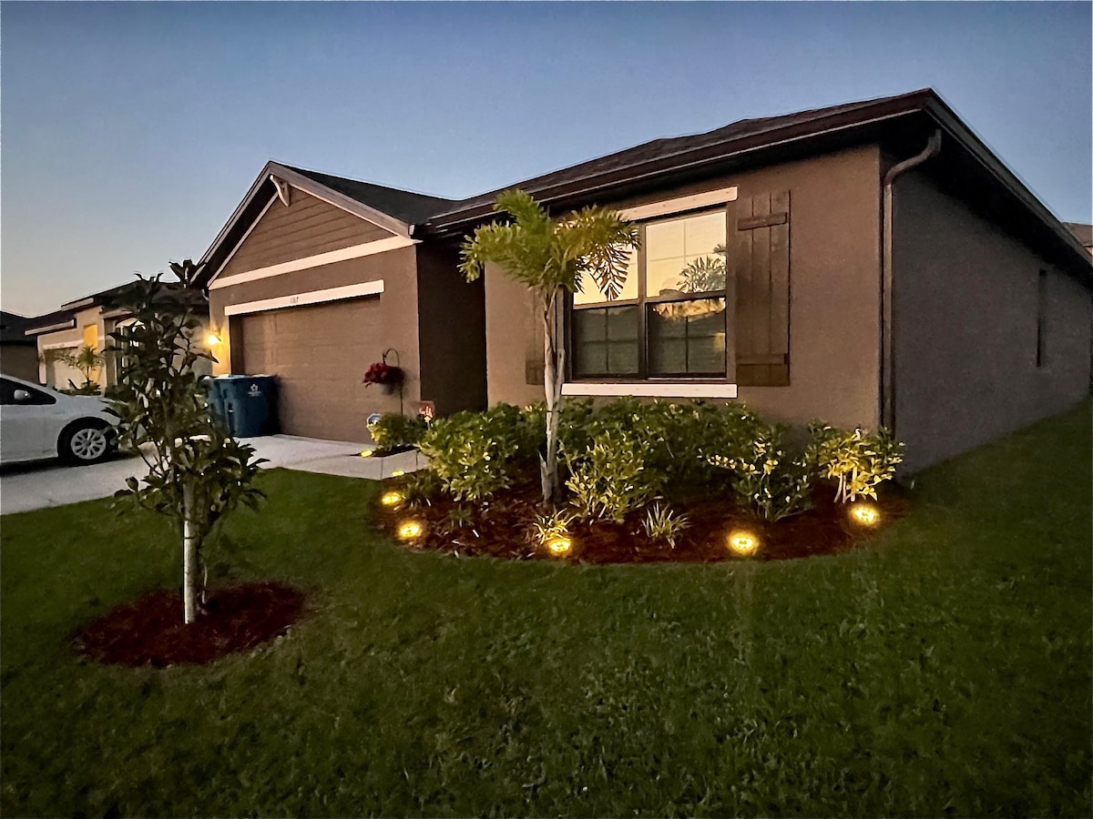 Visit our coastal area sanctuary: 2-bedroom, 2-bath home, 8 miles from Melbourne beaches. Unwind on a screened patio, grille meals on an outdoor patio, enjoy a private backyard, and rest in comfort on memory foam mattresses. With a full kitchen and laundry, convenience is at your fingertips. Beaches, surfing, airboat rides, Sebastian Inlet State Park (25 mi), the Cocoa Beach Pier (30 mi), hiking Turkey Creek, Kennedy Space Center (50 mi), and the Brevard Zoo (21 mi) all make great memories.