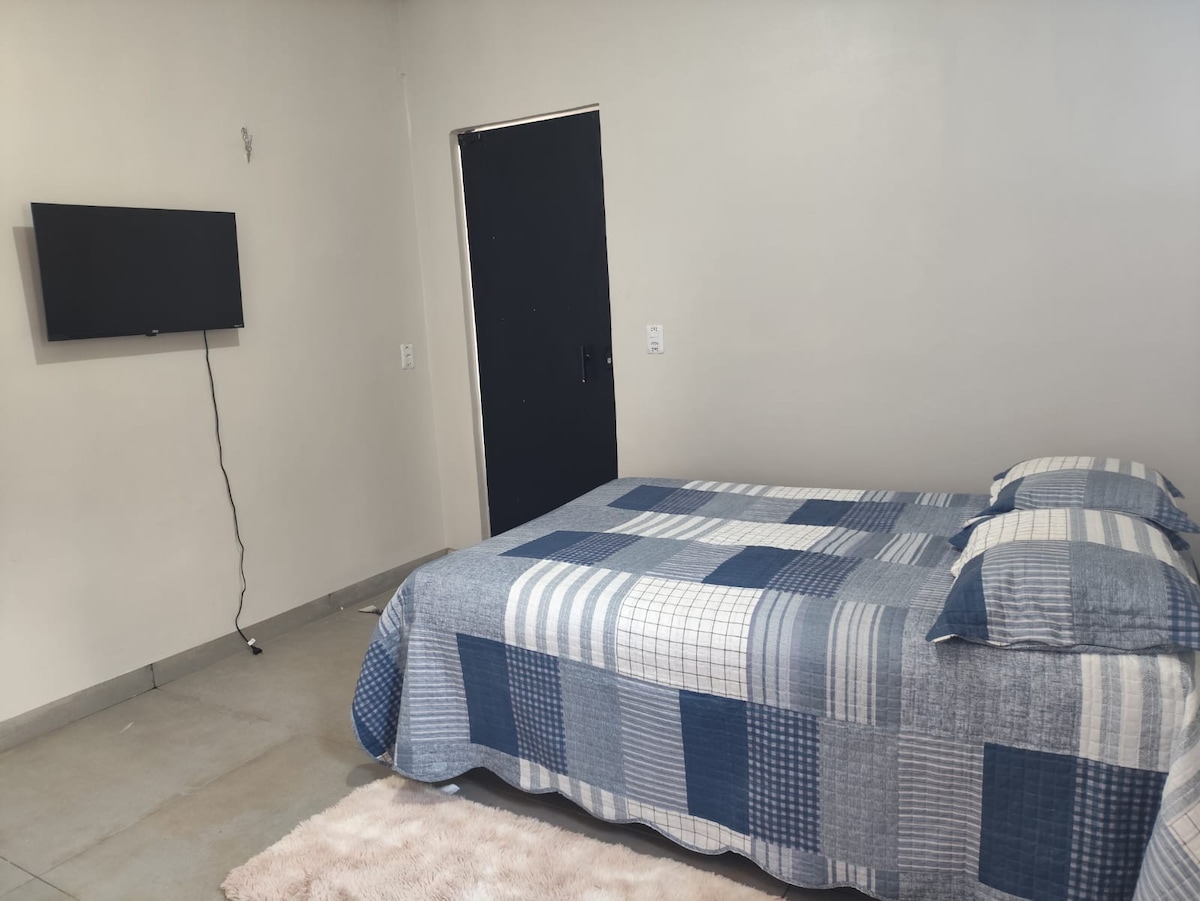 Gemütliche und funktionale Unterkunft, ideal für Singles oder Paare. Luftiges Zimmer mit Tisch und Stühlen, Küche mit Utensilien, Minibar und Mikrowelle, Bügeleisen und Kaffeemaschine. Komfortables Schlafzimmer, Badezimmer mit guter Dusche. Saubere, helle und gut belüftete Umgebung. Ausgezeichnete Lage, einen Block vom Einkaufszentrum Capim Dourado entfernt. Komfort und Praktikabilität für deinen Aufenthalt. Jetzt buchen!