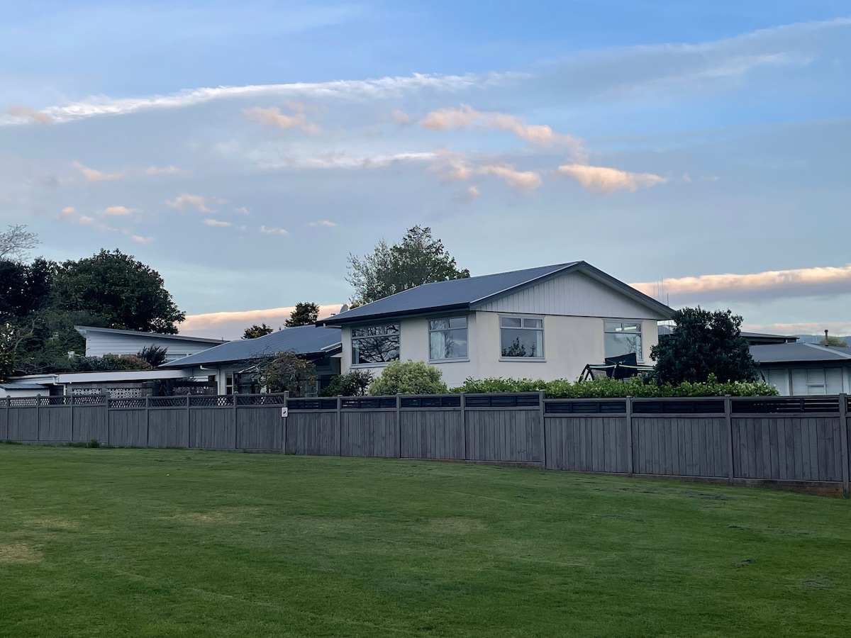 Komm und entspanne dich in unserem schönen, komfortablen Airbnb mit einem offenen Wohnbereich und einer geschützten Terrasse. Sie befindet sich auf einem großen Grundstück mit einem liebevoll gepflegten Garten und eignet sich daher für einen Familienurlaub oder für die Nutzung während einer Geschäftsreise in der Stadt. Die Esplanade und der Flussspaziergang sind nur 800 m entfernt und das CBD ist eine schnelle 1,5 km Fahrt entfernt. Wir befinden uns auch in unmittelbarer Nähe zur Massey University und UCOL. Der freundliche Gastgeber sorgt dafür, dass du alles hast, was du benötigst.