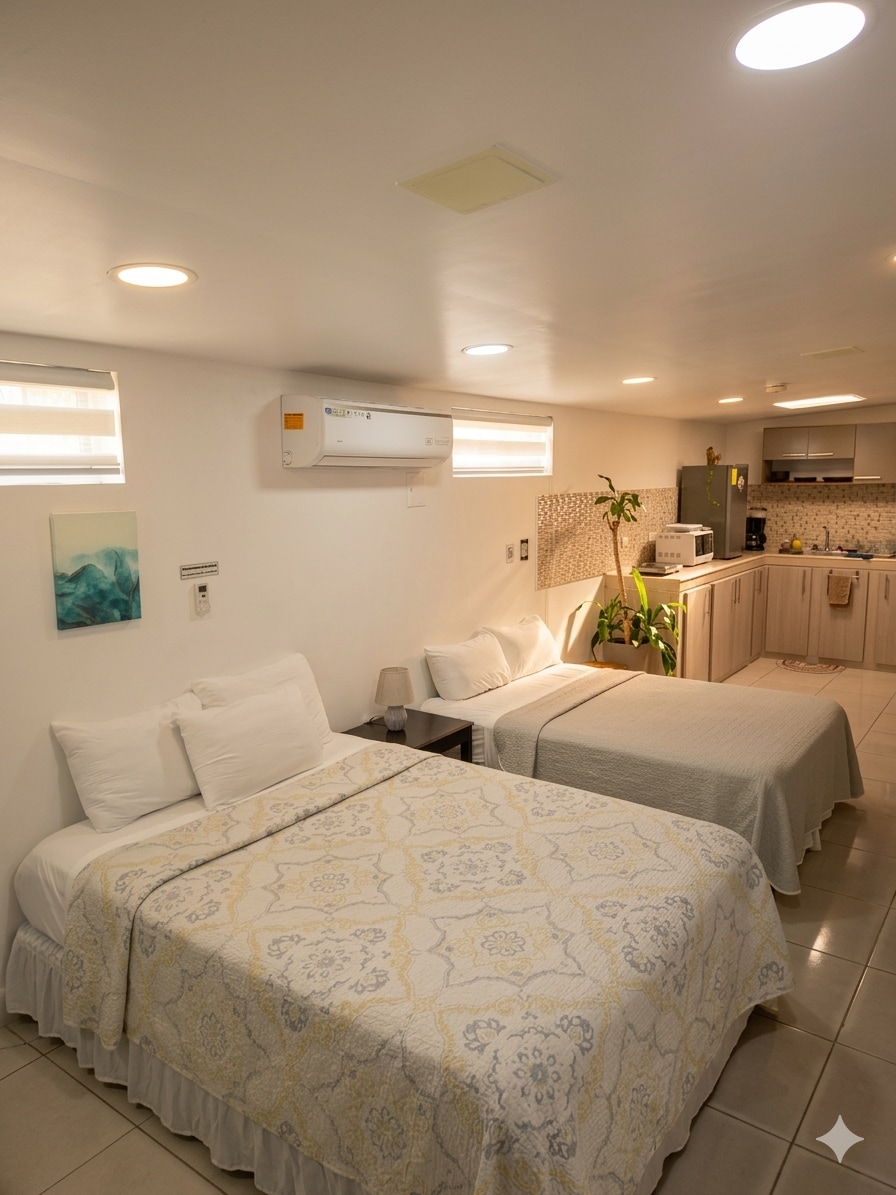 Genieße ein modernes, privates Studio (30 m²) für bis zu 2 Erwachsene (1 Queensize-Bett), nur 7 km vom internationalen Flughafen Tocumen entfernt. Perfekt für Zwischenstopps, Geschäftsreisen oder zum Entspannen vor deinem nächsten Ziel. Übernachte in einer geschlossenen Wohnanlage mit optionalem Privatparkplatz. Günstig gelegen in der Nähe von Einkaufszentren, Restaurants, der U-Bahn-Station Don Bosco und Corredor Sur — nur 20 Minuten von der pulsierenden Energie von Panama City entfernt. Transportdienstleistungen sind auf Anfrage gegen eine Gebühr verfügbar.