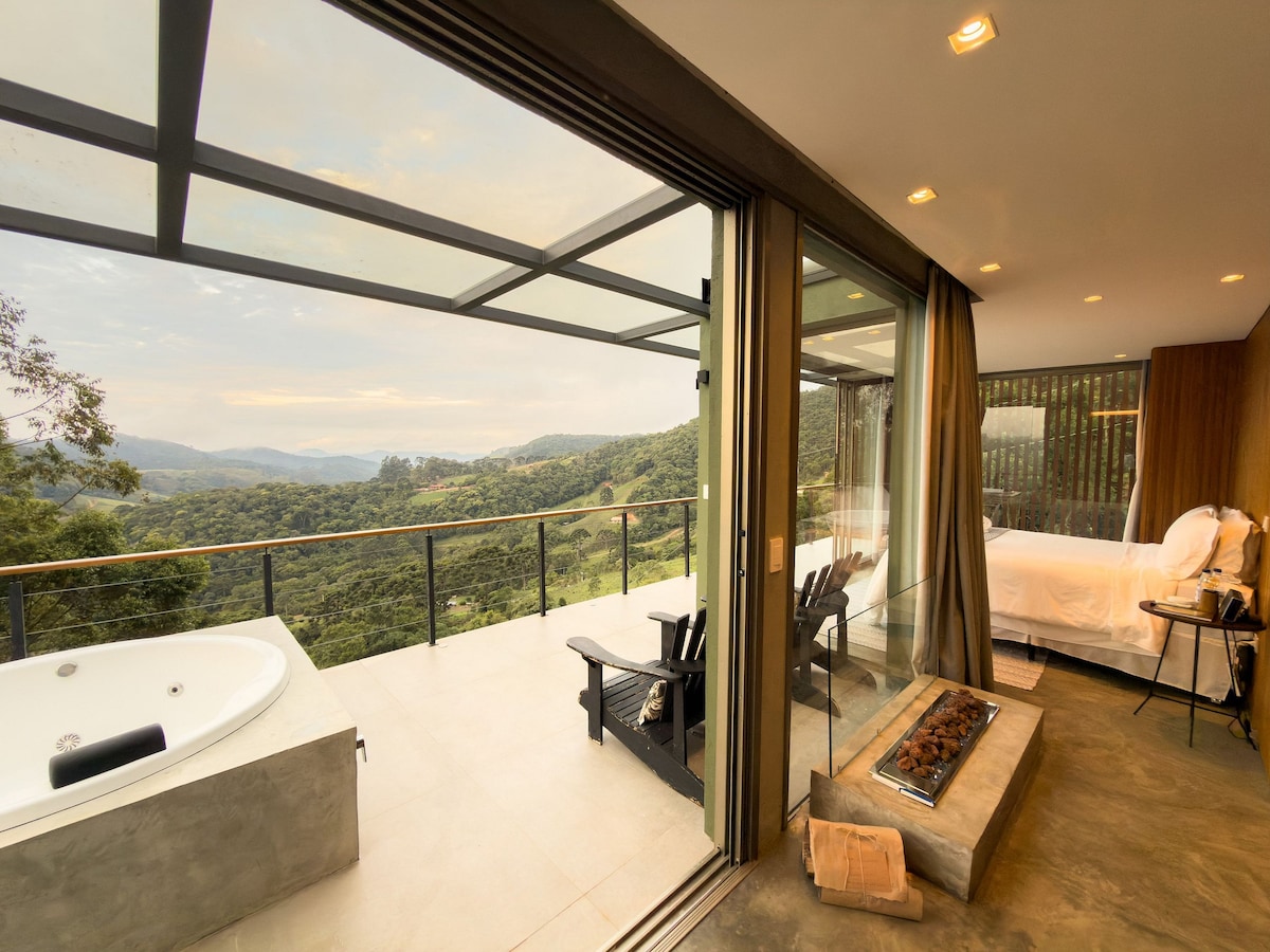 Um deine Tage auf dem Land zu genießen, mit Blick auf Mantiqueira und Sonnenuntergang in Pedra de São Domingos. Studio für 2 Personen mit 1 Suite, Queensize-Bett, Zimmer mit 2-Sitzer-Sofa, integrierter Küche, Trousseau-Bettwäsche aus ägyptischer Baumwolle, Trousseau-Badetücher aus ägyptischer Baumwolle und Gänsedaunenkissen. Starlink-WLAN, Whirlpool-Badewanne im Außenbereich und Gaskamin. Standort mit Überwachungskamera (außerhalb des Hauses) mit Audio- und Videoüberwachung. Die Kamera wird für deinen Aufenthalt eingeschaltet sein.
