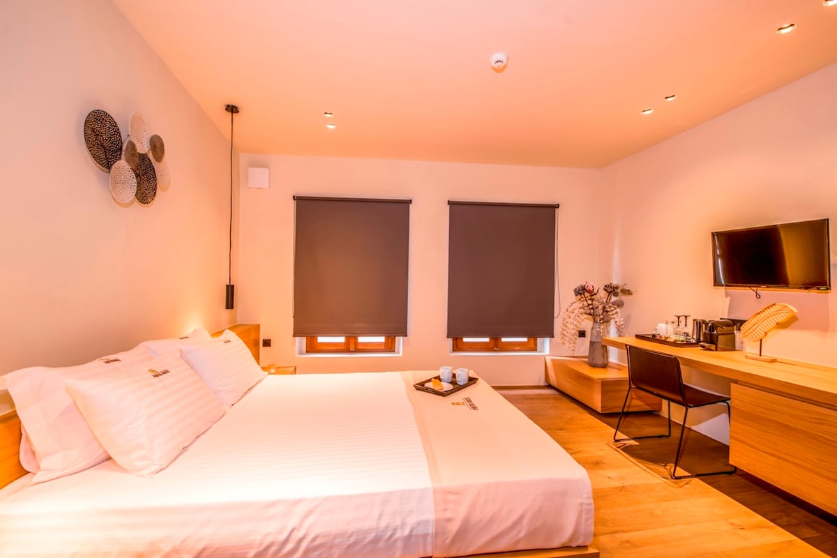Willkommen im Alba Boutique Hotel – wo zeitloser Charme auf modernen Komfort trifft. Im Herzen von Chania bietet ein wunderschön renoviertes neoklassizistisches Gebäude sechs einzigartige Zimmer, die für einen unvergesslichen Aufenthalt entworfen wurden, nur einen kurzen Spaziergang vom alten venezianischen Hafen und dem pulsierenden Stadtzentrum entfernt. Egal, ob du ein Paar auf der Suche nach einem romantischen Kurzurlaub, ein Alleinreisender oder eine Gruppe von Freunden bist, die Lage ist ideal, zentral und dennoch ruhig mit allen Annehmlichkeiten, die zu Fuß erreichbar sind.