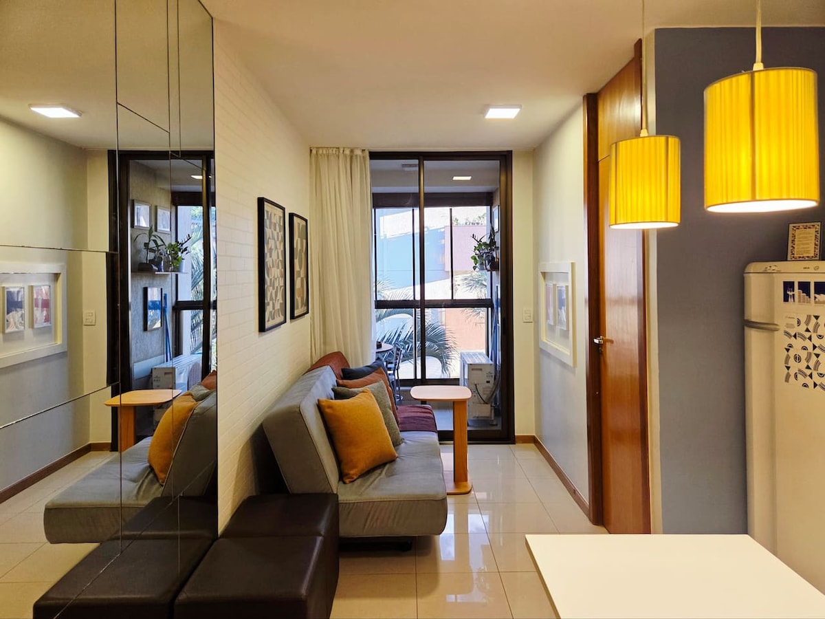 Komfort im Herzen von Brasília. Übernachte im strategischen Block L des Life Resorts, mit Blick auf den Garten und einen kleinen Bach. Nur wenige Schritte von einem Minimarkt, Café, Pub, Pizzeria, Salon, Fitnessraum, beheiztem Pool entfernt. Ideal für 2 Personen, bietet aber mit einem Sofa und einer zusätzlichen Matratze Platz für bis zu 4 Personen — perfekt für kurze Aufenthalte mit großem Wert. Ausgestattete Küche, Klimaanlage, Smart-TV, WLAN, saubere Handtücher und Annehmlichkeiten. Nur 5 Minuten von der Esplanade entfernt. Seenähe mit Kajakfahren und anderen Wassersportarten.