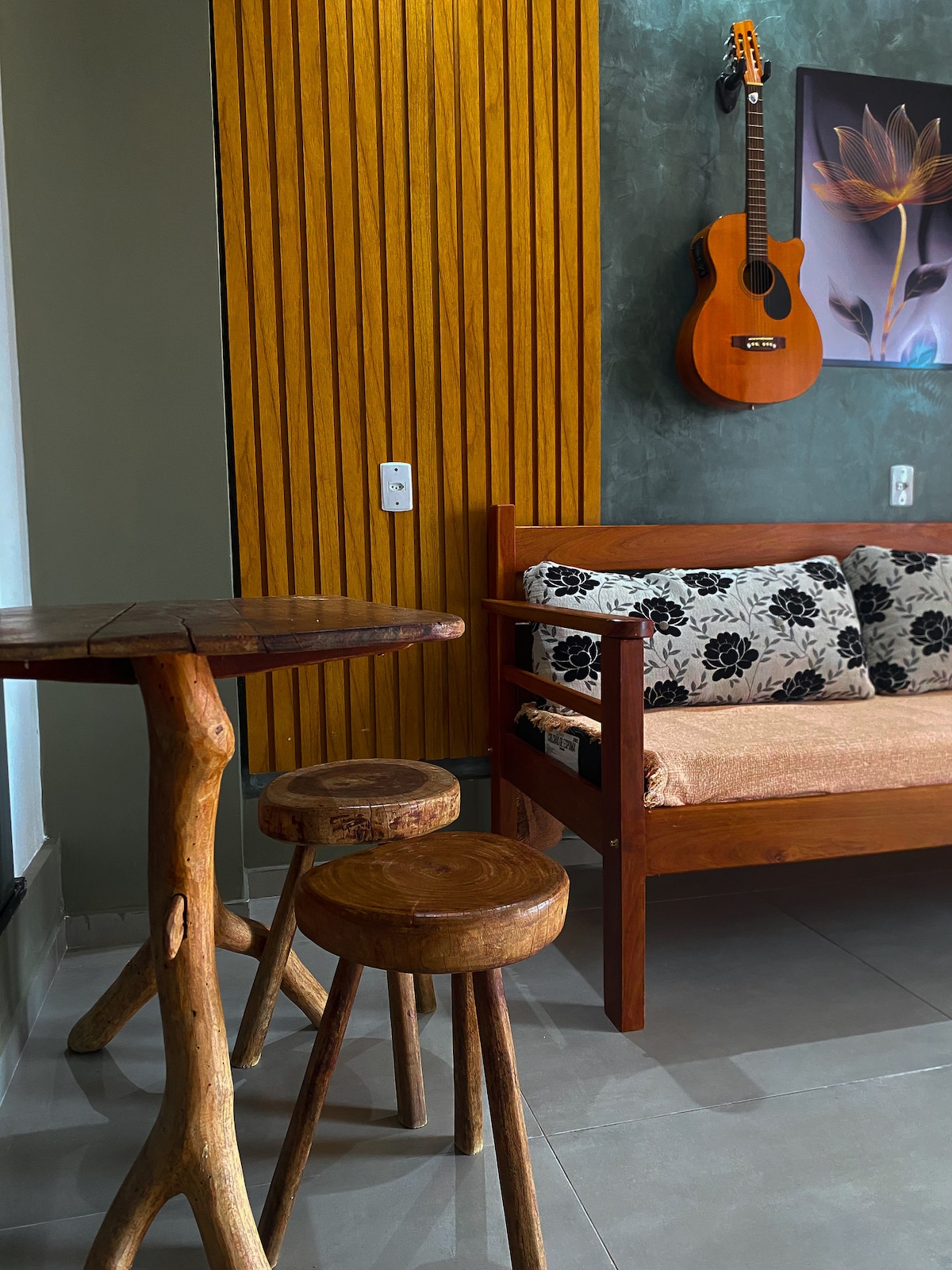 Sterngras ist eine einheimische Art Brasiliens, mehrjährig, typischerweise in offenen, ländlichen und erhöhten Umgebungen des Cerrado zu finden. Inspiriert davon, zielt Estúdio Capim Estrela darauf ab, ein Ort für diejenigen zu sein, die Ruhe und Frieden suchen. Die Unterkunft wurde bis ins kleinste Detail so gestaltet, dass sie ein einladendes Erlebnis mit einer sauberen, duftenden Umgebung und einer Atmosphäre bietet, die Sorgfalt und Gastfreundschaft vermittelt.