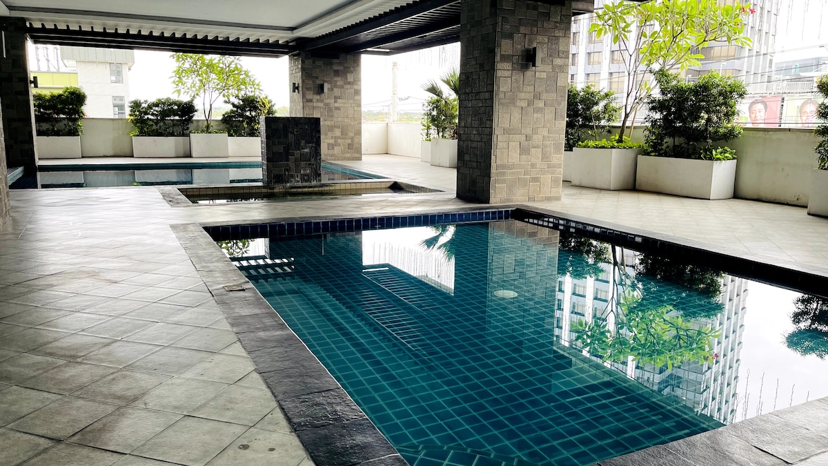Genieße deinen Aufenthalt in unserer hellen und gemütlichen 2-Zimmer-Wohnung. Günstig im Herzen von Ortigas CBD gelegen, sind beliebte Einkaufszentren, Cafés, Restaurants und Bars nur wenige Schritte vom Gebäude entfernt. Unser Zuhause bietet den perfekten Ort für Familien, Paare, Freunde und Geschäftsreisende, da es ein idealer Ausgangspunkt ist, um die Stadt zu erkunden! Zu den Annehmlichkeiten gehören Gemeinschaftspools und Fitnessraum, WLAN, Netflix und mehr! Kostenpflichtige Parkplätze befinden sich neben dem Gebäude, während sich der Münzwaschsalon im Erdgeschoss befindet.