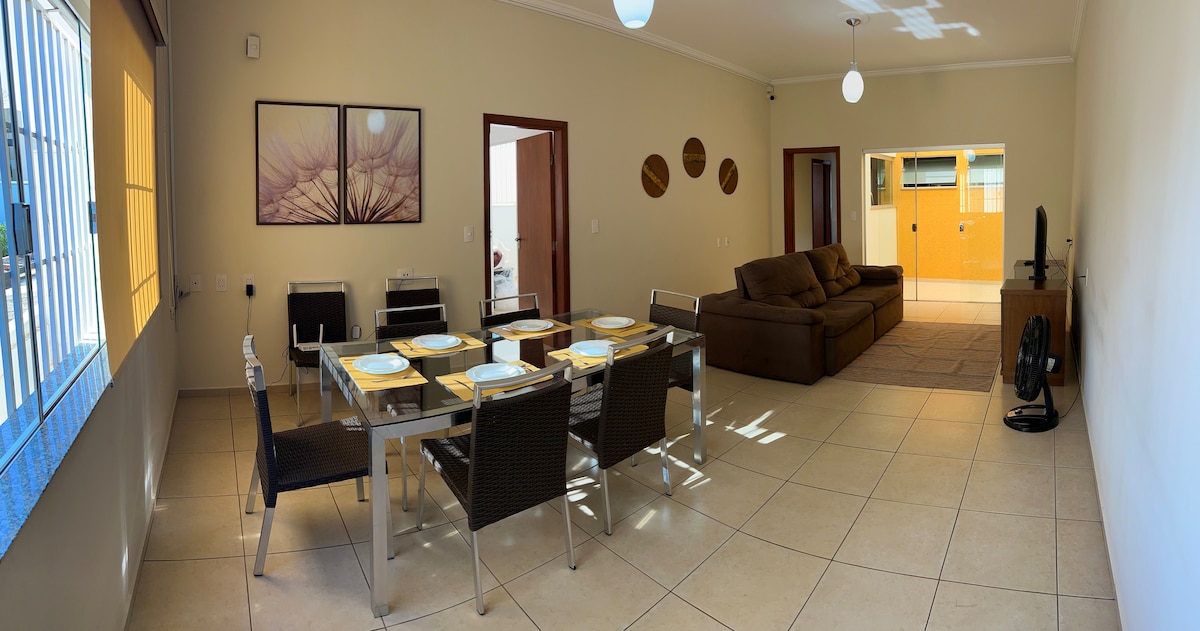 Ausgezeichnete Lage, einfacher Zugang, sehr sicherer Ort, ruhige Nachbarschaft, Zimmer im Hintergrund sehr ruhig, 5 Minuten vom Zentrum entfernt, WLAN, Garage, geräumiges Wohnzimmer. Möglichkeit von Mahlzeiten und hausgemachtem Käsebrot mit Canastra-Käse. Mehrere Geschäfte alle in der Nähe des Hauses.