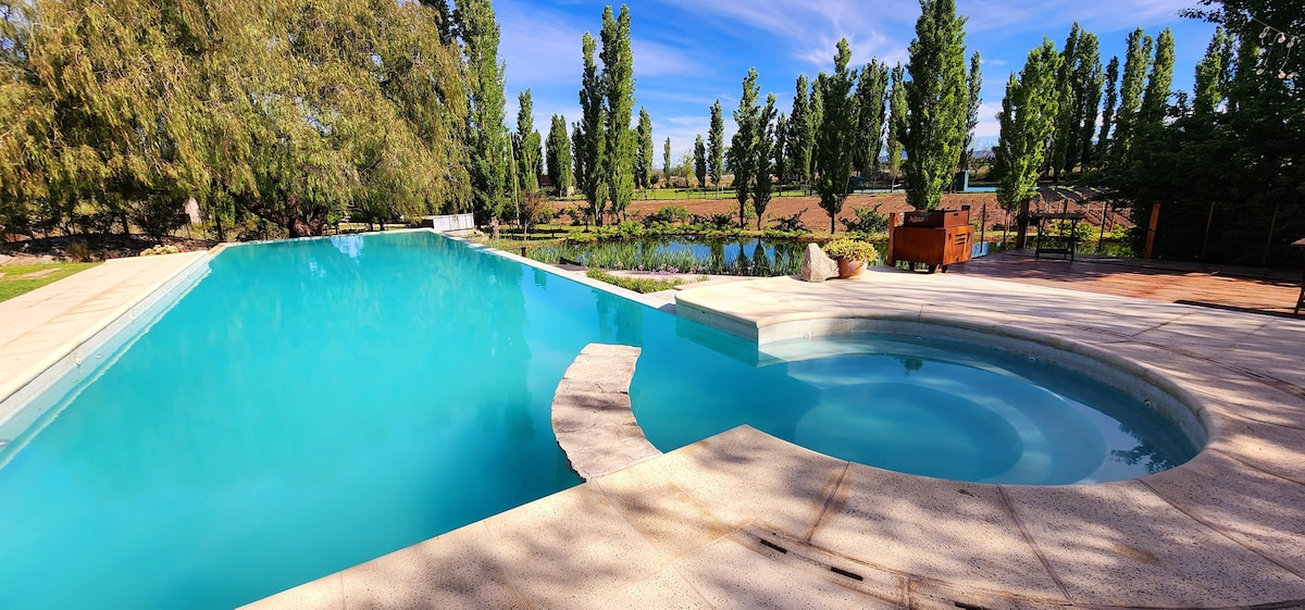 Entdecke den Charme unseres Santa María Reina Estate and Vineyard, einem gemütlichen Rückzugsort in San Rafael, Mendoza, Argentinien. Wir haben 3 Zimmer mit eigenem Bad, ein geräumiges Wohnzimmer mit Brennholzhaus, eine voll ausgestattete Küche und einen weitläufigen Garten, um die schöne Aussicht auf die Berge und den Weinberg zu bewundern. Du kannst dich um den Herd versammeln oder einen traditionellen argentinischen Asado machen, während du die Landschaft genießt und einen guten Wein genießt, nachdem du im Pool abgekühlt bist. Wir helfen gerne!