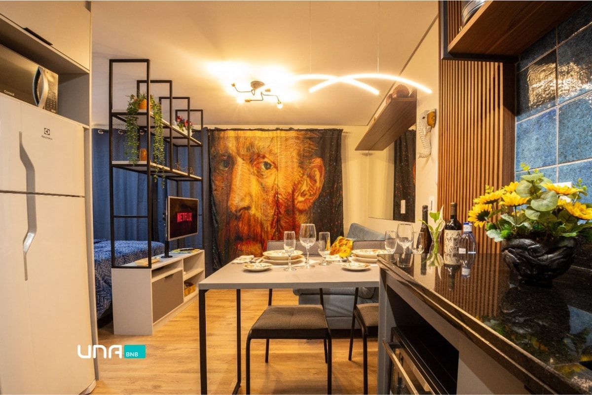 Willkommen im Loft Van Gogh! Im Herzen des Una Parks gelegen, ist es ein Raum, der vom Genie und künstlerischen Geist von Vincent Van Gogh inspiriert ist. Mach dich bereit für einen angenehmen Aufenthalt in einer sorgfältig durchdachten Umgebung, um die Essenz der Kunst zu reflektieren und eine lebendige, authentische und einladende Atmosphäre zu schaffen, die dieses einzigartige, unvergessliche und inspirierende Erlebnis macht!