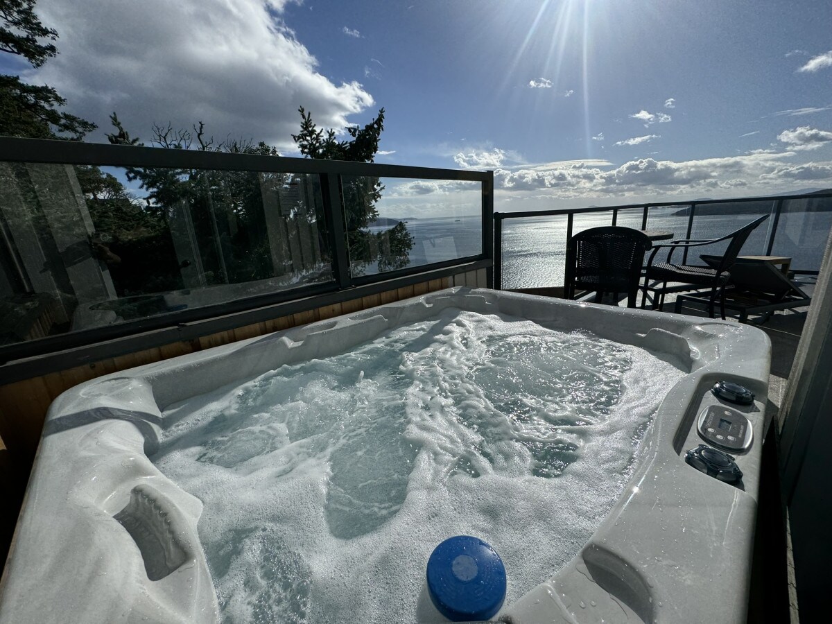 Schönes Zedernhaus auf einem abgelegenen halben Hektar mit atemberaubender Aussicht auf Saturna, die San Juan's und Mt. Baker. Erstaunlicher Felsenkamin, große voll ausgestattete Landhausküche, Sonnenraum mit 180-Grad-Blick auf alles. Das Haus verfügt über drei Schlafzimmer, zwei Badezimmer und eine Höhle. Zwei große Terrassen mit Meerblick, ein Whirlpool mit Blick auf das Meer und eine Gezeiteninsel, auf der sich Otter, Robben und Vögel versammeln, und sogar gelegentliche Orca-Sichtungen!