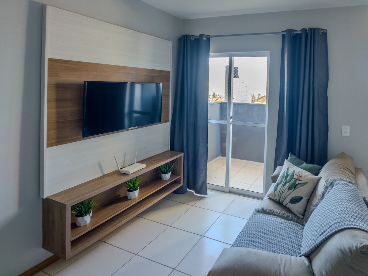 Neue und gemütliche Wohnung in Armação / Penha, in der Nähe des Beto Carrero World Park (1 km) und 50 Meter vom Strand von Fortaleza entfernt. Mit 92 m² bietet die Wohnung Küchenutensilien, Bettwäsche und Handtücher, einen großen Balkon mit seitlichem Meerblick und Unterkunft für 8 Personen (Erwachsene/Kinder) sowie ein zusätzliches Kinderbett für Babys bis 4 Jahre. Der Gemeinschaftsbereich kann von 4 Personen gleichzeitig (abwechselnd) mit 4 verfügbaren Armbändern genutzt werden. Die Verwendung des grünen Armbands ist im Pool, im Fitnessstudio und im Spielzimmer obligatorisch.