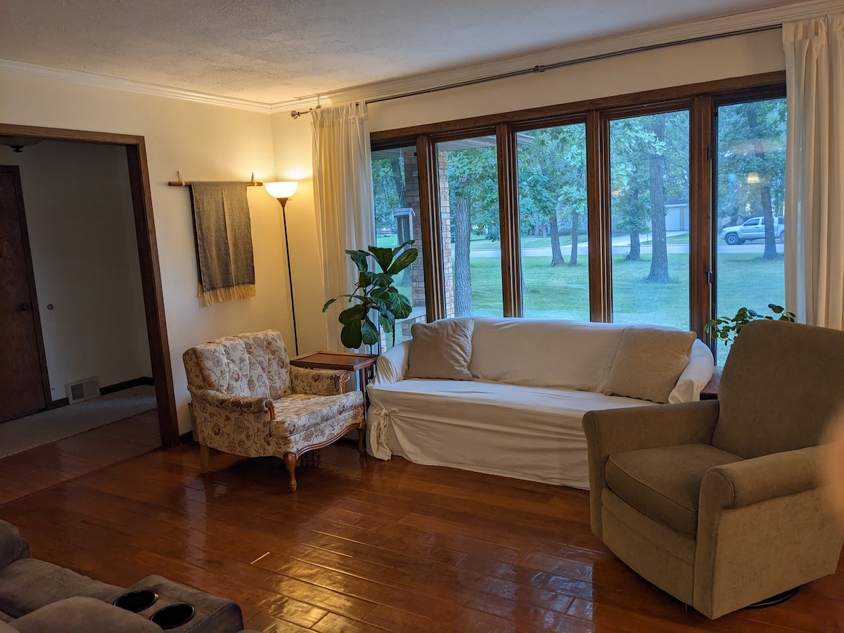 Relax with the whole family or book a retreat for your work trip at this peaceful place to stay- we're on the edge of town in a beautiful, quiet neighborhood. Backyard has river views and the best sunsets in town! In the summer- borrow our 3 kayaks or just hang out in the hammock. In the winter- curl up with a book by the fireplace. Workspace available, and full kitchen for your use. NOTE: more pictures are in the works, but we wanted to get the house up for booking asap!