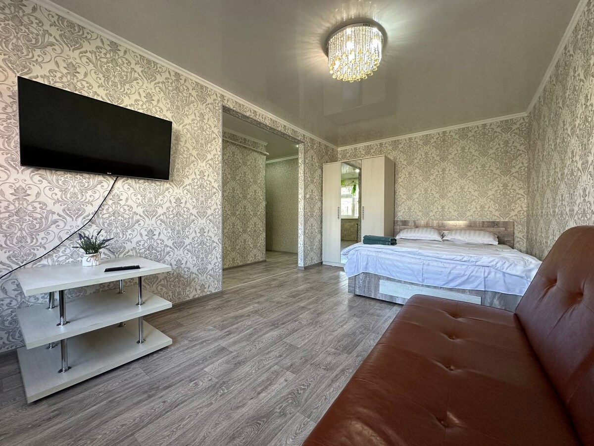 1 - комнатная квартира класса люкс в центре города. Расположение в самом центре. Пребывание на квартире подарит вам яркие эмоции и вы захотите вернуться сюда снова. Квартира оснащена всей необходимой бытовой техникой, двуспальной кроватью с ортопедическим матрасом (матрас с кокосовым наполнителем), проектор, безлимитным WIFI, а также диван для комфортного времяпровождения.