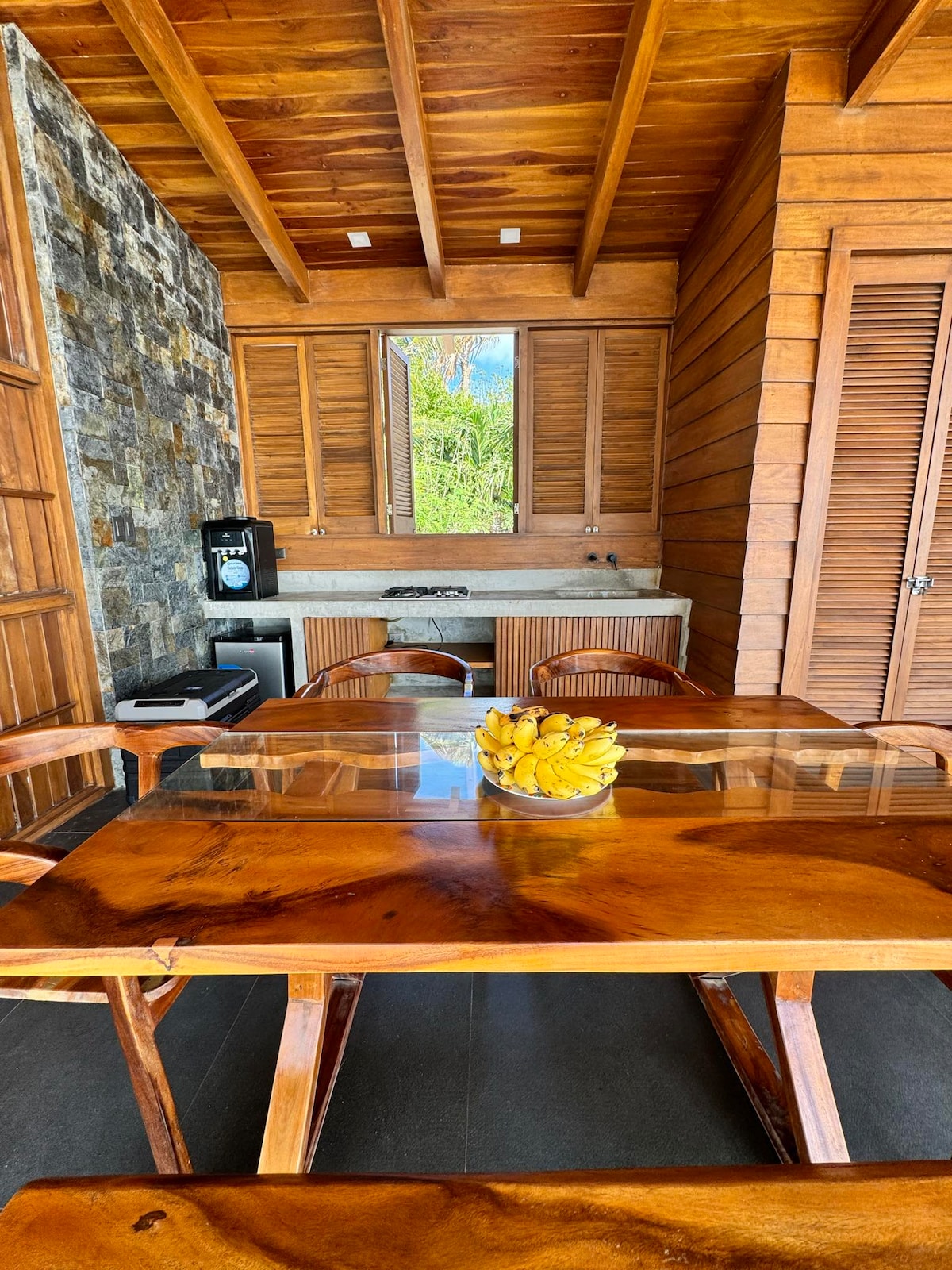 Das Haus liegt wunderschön mitten in den großen Bäumen. Es ist für deinen Komfort mit gestalteter Küche, Badezimmer und Schlafzimmer mit erstaunlich privater Open-Air-Badewanne gemacht. Entspanne dich, während du den Balete-Baum mitten im wilden Wald anstarrst, aber in der Nähe von Siquijor und San Juan Lehne dich zurück und entspanne dich – in dieser ruhigen, stilvollen Unterkunft.
