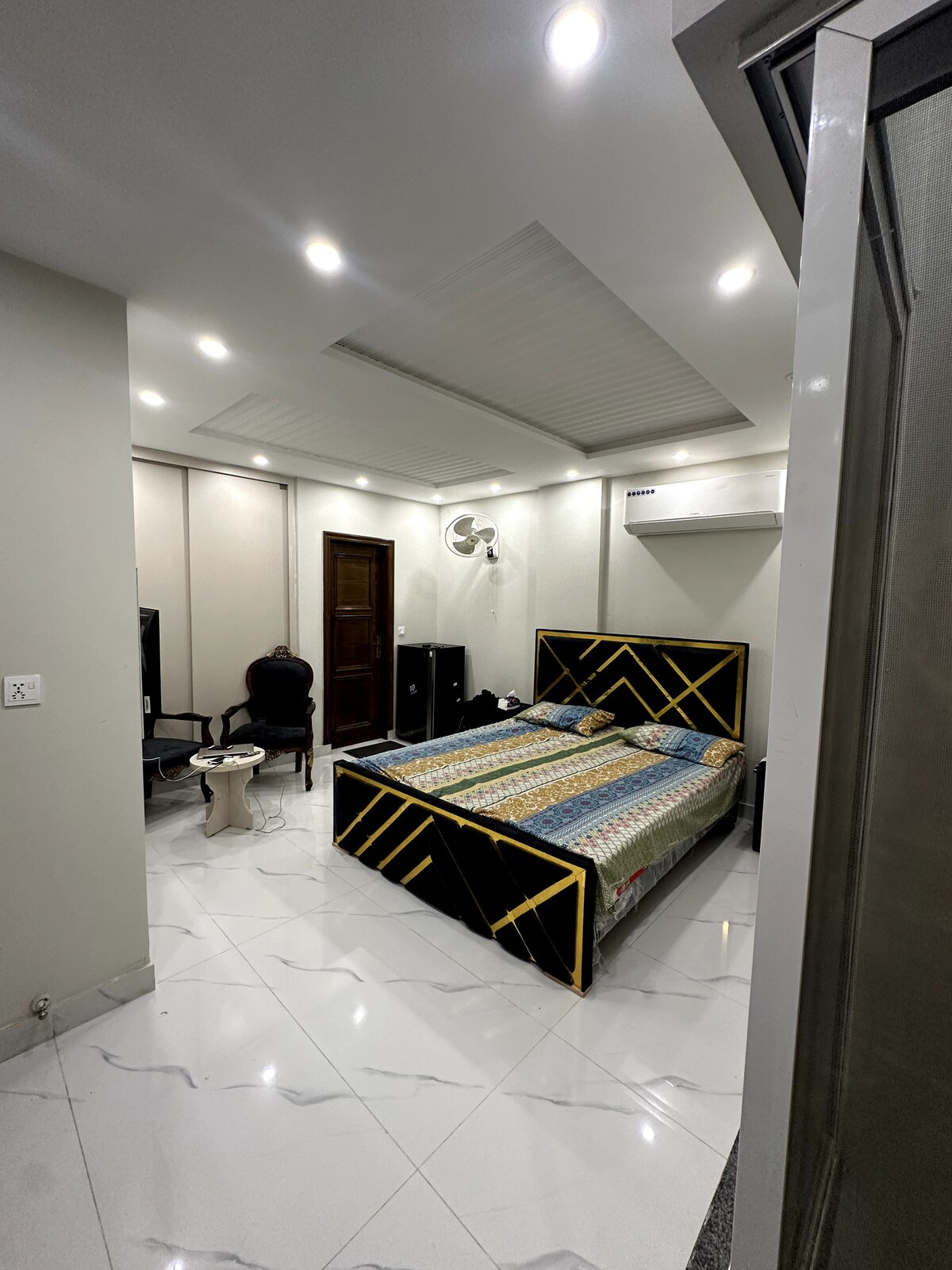 Willkommen in deinem gemütlichen Rückzugsort! Die sicherste, friedlichste Einzimmerwohnung in Bahria Town Lahore Ideal für Paare, Familien, Solo-Abenteurer oder Geschäftsreisende. Im Inneren findest du einen gut ausgestatteten Wohnbereich, eine voll ausgestattete Küche und ein gemütliches Schlafzimmer. Mit Annehmlichkeiten wie WLAN, Klimaanlage, einem vollständig intelligenten Fernseher und einem Wandventilator. Frische Bettwäsche und Handtücher. Genieße den Komfort, in der Nähe aller Restaurants und Annehmlichkeiten zu Fuß erreichbar zu sein.