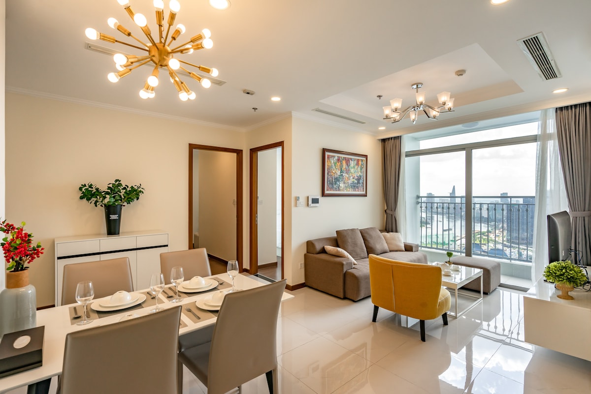 Hallo, dies ist eine Wohnung mit zwei Schlafzimmern im Landmark Plus-Gebäude mit kompletter Ausstattung, insbesondere haben wir eine Badewanne und einen Panoramablick auf Ho-Chi-Minh-Stadt. CR Concept ist ein Unternehmen, das Luxuswohnungen im Herzen von Ho Chi Minh mit Vinhomes Central Park, Metropole Thu Thiem, Home by CR Concept, … bietet. Wenn du also mehr als eine Unterkunft benötigst, kannst du mehr in unserem Profil mit Bewertungen sehen.