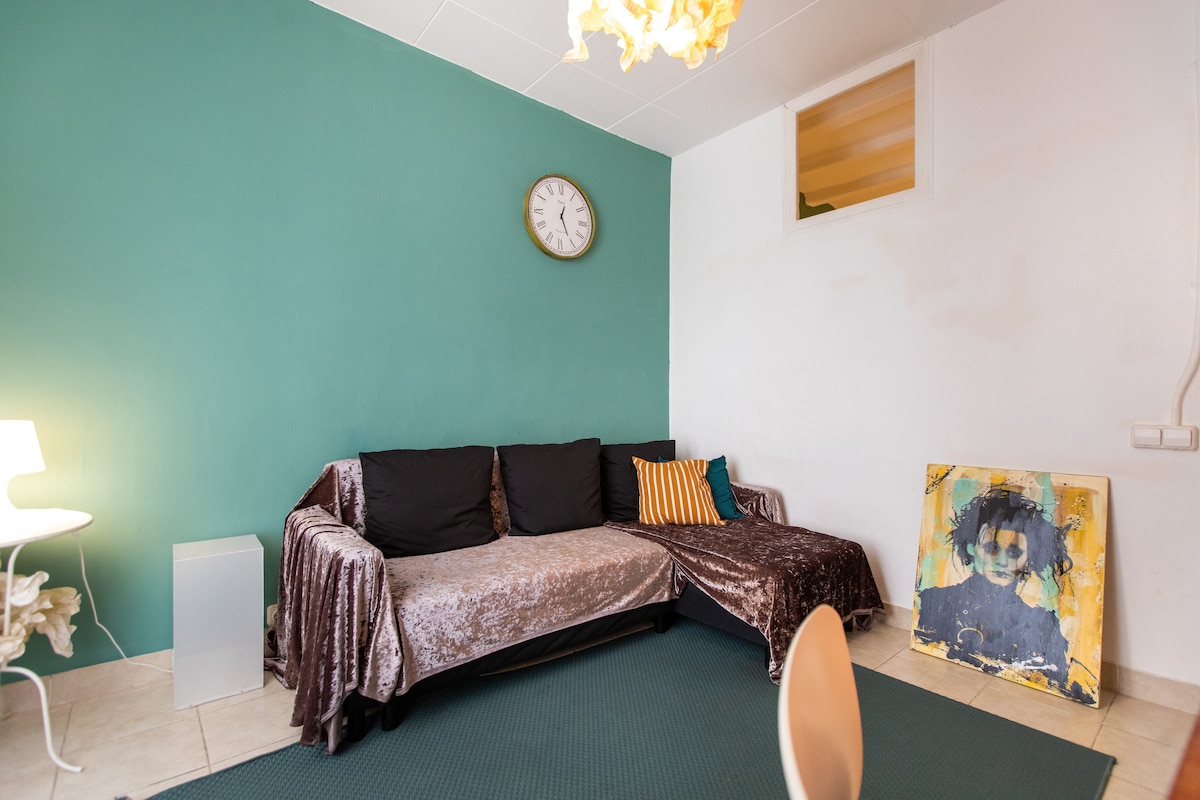 1 bedroom fully furnished apartment with all new upgrades. It has living room with dining area, relaxing sofa bed (sofa bed has very good quality mattress). The bedroom is very spacious. It has new super king size bed 180cm x 200cm with very comfortable mattress. There is cozy balcony with street overview. Cozy, relaxing and very beautiful! The flat is located in the heart of Barcelona in 5 mins from Plaza Catalunya, just a walking distance from La Rambla, Arc de Triumph, Cuitadella Park.