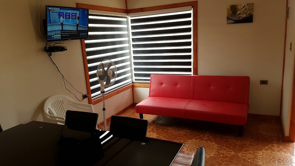 Warme und gemütliche, gut ausgestattete Unterkunft im städtischen Sektor von Lonquimay. Die Hütte verfügt über einen separaten Eingang, Parkplatz, Terrasse, Kabel-TV und Prepaid-Mobil-WLAN. Weniger als 10 Gehminuten vom Zentrum entfernt und mit einfachem Zugang zu Touristenattraktionen.