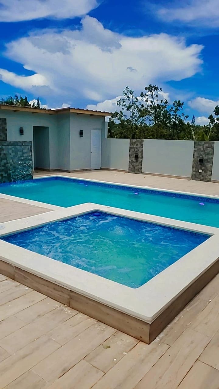 Willkommen in der Villa Los Caciques, mit einer Kapazität für 16 Personen und umgeben von Natur, ist sie perfekt für Urlaub und Entspannung. Sie verfügt über einen geschlossenen Umfang, einen Swimmingpool, einen Billardtisch, eine riesige Terrasse, Spiele für Kinder und Erwachsene, einen Dominotisch, einen Pavillon, eine kalte Küche, eine heiße Küche und ein Lagerfeuer. Sie liegt 10 Minuten vom Fluss Camú, nur 15 Minuten vom Stadtzentrum und 10 Minuten vom Salto de Jimenoa, einer der wichtigsten Touristenattraktionen in Jarabacoa, entfernt. Wir hoffen, sie gefallen dir.