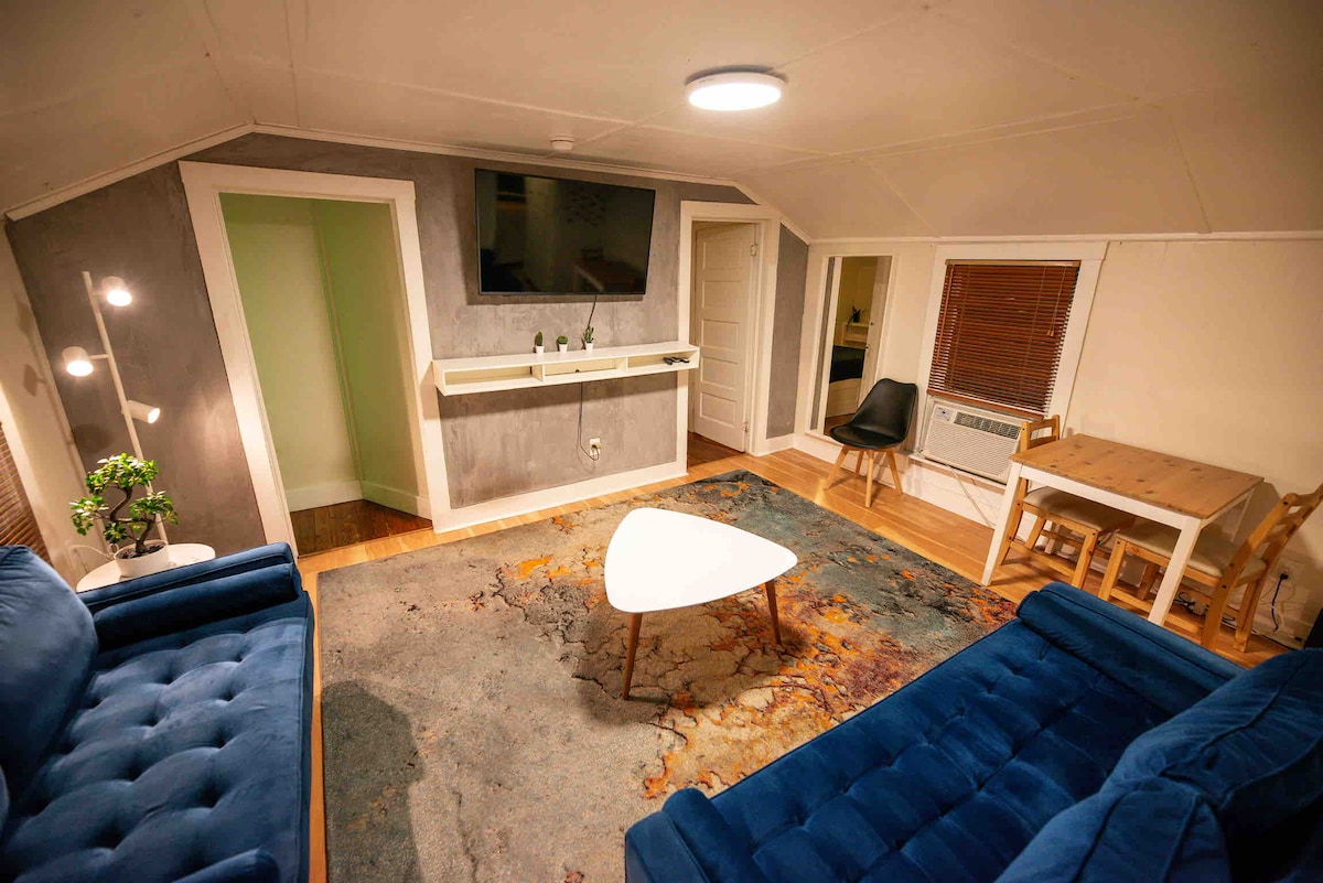 • Boho-chic studio • Maximum of 2 guests • Private entrance for complete privacy • Well-equipped kitchenette: two burner stove top, microwave/air fryer, coffee maker, pots, and pans and more • Keyless door locks and safe box • Free WiFi and dedicated parking space • Water filter through all lines/Food disposal