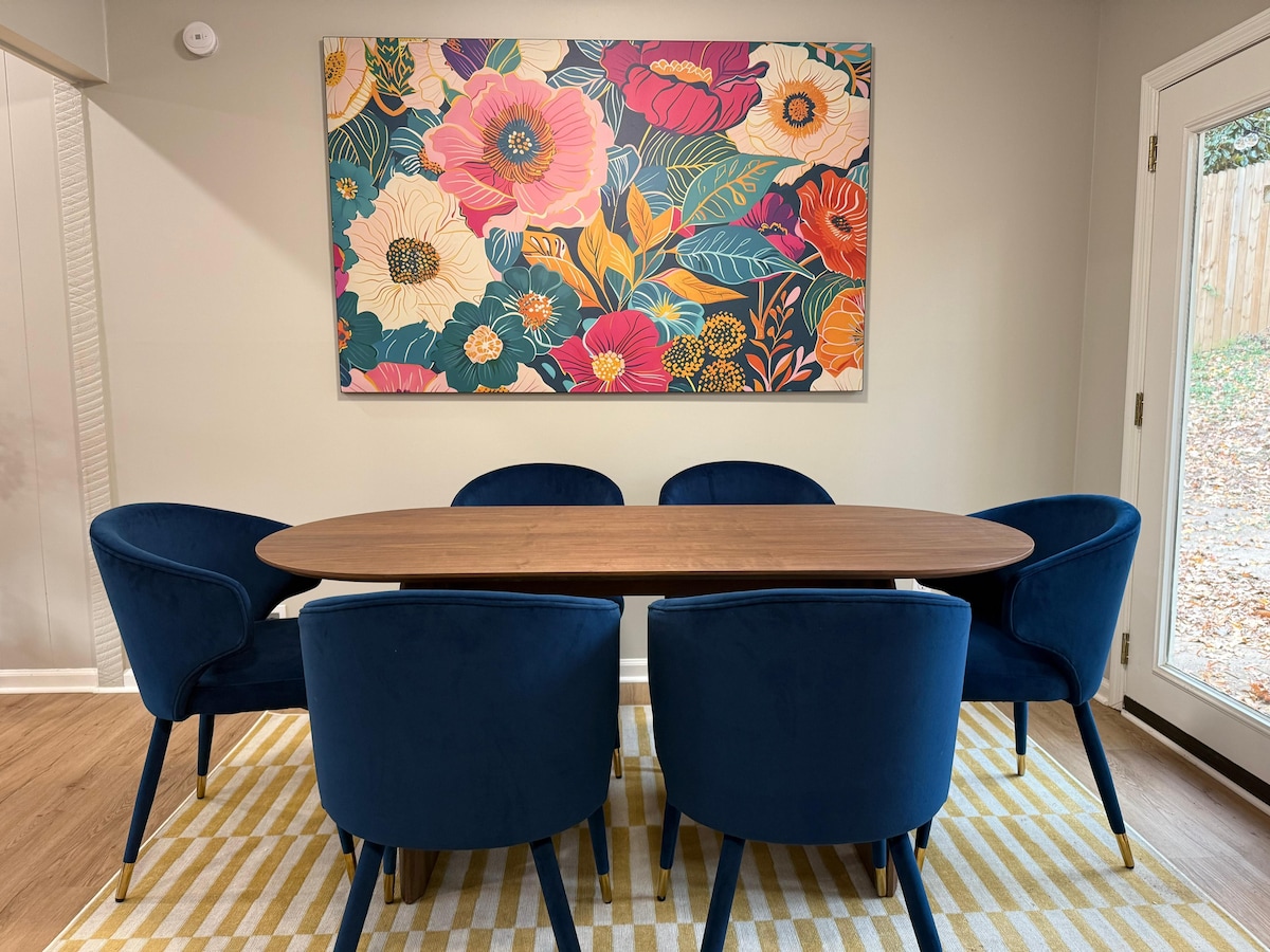 Entspann dich in dieser besonderen und ruhigen Unterkunft. Geschmackvoll gestaltetes Ferienhaus nur wenige Blocks von Restaurants, Bars und Einkaufsmöglichkeiten in der Innenstadt von Columbus und nur wenige Gehminuten (10 Minuten zu Fuß) vom Synovus Park entfernt, aber weit genug für einen ruhigen und friedlichen Rückzugsort. Das Haus bietet alles, was du für einen Wochenendurlaub oder einen mehrmonatigen Einsatz benötigst. Der Chattahoochee Riverwalk und das Civic Center sind nur zwei Blocks entfernt. Wenige Fahrminuten nach Fort Benning. Alle Kunstwerke stammen von einheimischen Künstlern.