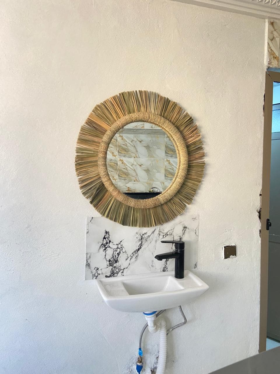 Gemütliche, sonnendurchflutete Wohnung im Herzen von Taghazout – nur 2 Minuten von der Hauptstraße entfernt. Verfügt über zwei Schlafzimmer: eines mit einem großen Bett, das in zwei Einzelbetten getrennt werden kann, und ein weiteres mit Etagenbetten. Genieße einen Loungebereich, eine voll ausgestattete Küche, eine separate Toilette und Dusche sowie ein starkes 5G-Glasfaser-Internet. Traditionelle marokkanische Fliesen und große Fenster verleihen Charme und Licht. Perfekt für Surfer, Paare oder Freunde, die Komfort und lokalen Stil suchen.