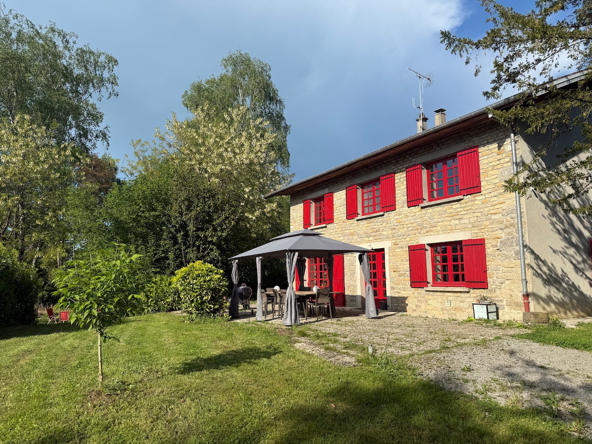 Entdecken Sie eine Oase der Ruhe und des Grüns im Herzen des charmanten Dorfes Arlay, einer kleinen charaktervollen Stadt der Franche-Comté und Hauptstadt des Strohwesens. Dieses Haus ermöglicht es Ihnen, Entspannung und Entdeckungen der Region zu kombinieren. Nur einen Katzensprung vom Fluss entfernt, Angeln, Spaziergänge, Besichtigung von Weinkellern, Weinbergen, Schlössern... Ideal gelegen an der Jura-Weinstraße, in der Nähe von Lons-le-Saunier, Château-Châlon, Baumes-les-Messieurs, weniger als 1 Stunde von der Seenregion, Igelwasserfälle, Dole, Arbois, Louhans...