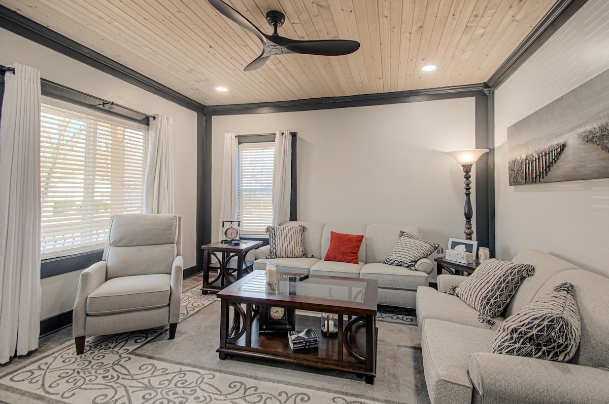 Großes, geräumiges Haus, perfekt für Unterkünfte bis zu zwölf und unterhaltsam bis zu fünfundzwanzig. Ein Kingsize-Doppelbett, vier Queensize-Doppelbett und ein voll ausgestattetes Etagenbett. Drei Badezimmer. Hunde willkommen! Malerischer, eingezäunter Hinterhof. Voll ausgestattete Küche. Riesige Terrasse mit Grill. Echter Holzkamin, Feuerstelle und Brennholz vor Ort. Zwei Waschmaschinen und zwei Trockner für die Wäsche. Fünf Gigs ultraschnelles Internet. Sechs Smart-WLAN-Fernseher. Vollständige Ausstattung für Kleinkinder. Mehrere Arcade-Systeme, Mülleimer mit Spielzeug, Dutzende von Brettspielen und Aktivitäten.