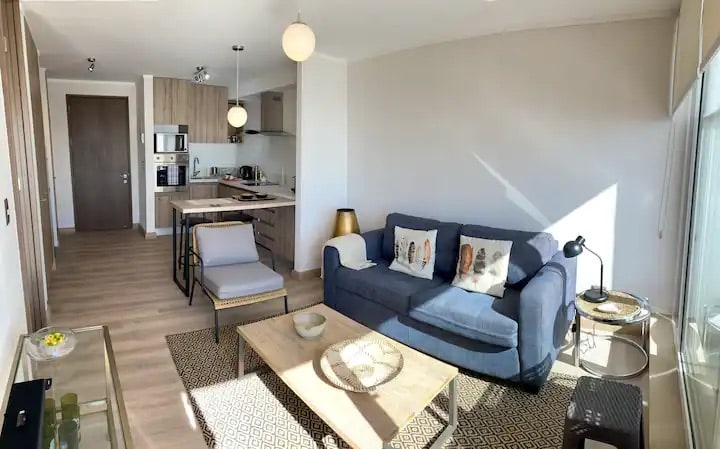 Neue, voll ausgestattete Wohnung mit Doppelzimmer und Schlafsessel (2 Plätze), ideal für Paare oder für die Reise mit Kindern. Unten finden Sie einen Boulevard mit 24/7 Minimarkt, veganem Essen, Restaurants und vielem mehr. Auf der anderen Straßenseite finden Sie KFC, Starbucks, Pizza und mehr. Einen Block von einem Park zum Wandern oder Trainieren, 5 Minuten von Jumbo Con Con, Dünen und Strand entfernt. Es ist eine ausgezeichnete Gelegenheit, die Gegend zu genießen, ohne große Entfernungen zurücklegen zu müssen.