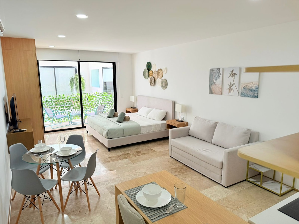 Wunderschöne Wohnung im Studio-Stil, komplett mit einem Kingsize-Bett ausgestattet. Diese Wohnung befindet sich in einer atemberaubenden Anlage mit ausgezeichneter Lage in Playa del Carmen. Einige der angebotenen Annehmlichkeiten sind zwei Pools, ein Fitnessraum, Liegestühle, Parkplätze und eine herrliche Kunstgalerie. Dieses Studio ist ideal zum Entspannen und Genießen einer der privilegiertesten Orte in Playa del Carmen. Die WLAN-Verbindung ist sehr schnell und perfekt, um aus der Ferne zu arbeiten.