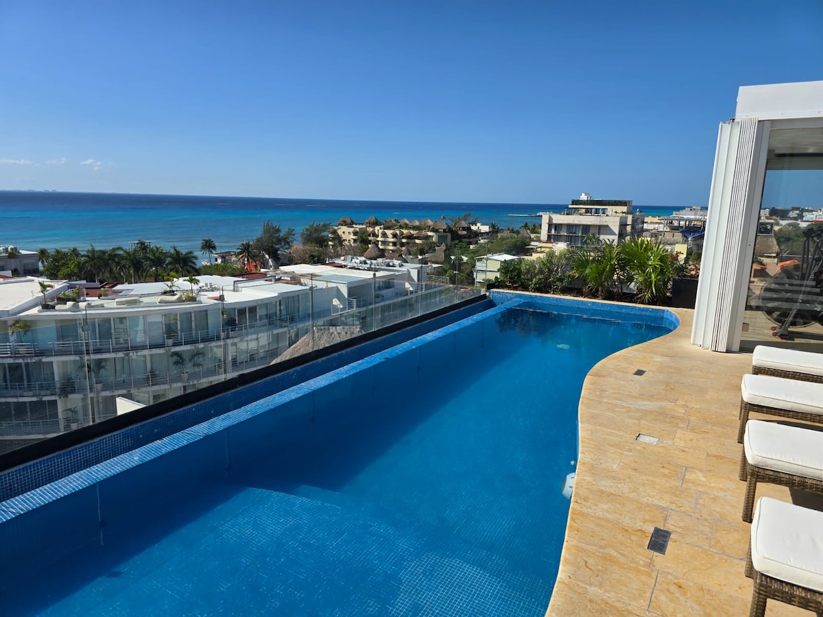 Genießen Sie den Luxus und Komfort in unserer Wohnung! Sie verfügt über 1 elegantes Schlafzimmer mit Meerblick, eine private und geräumige Terrasse mit spektakulärer Aussicht. Nur wenige Gehminuten vom Strand und der Quinta Avenida entfernt. Privater, sicherer und kostenloser Parkplatz. Rooftop mit Blick auf das Karibische Meer, Pool, Whirlpool, Fitnessraum und Dampfbad. Sie verfügt auch über eine Lobby und eine Rezeption und Sicherheit rund um die Uhr. Buche jetzt und erlebe ein unvergessliches Erlebnis!