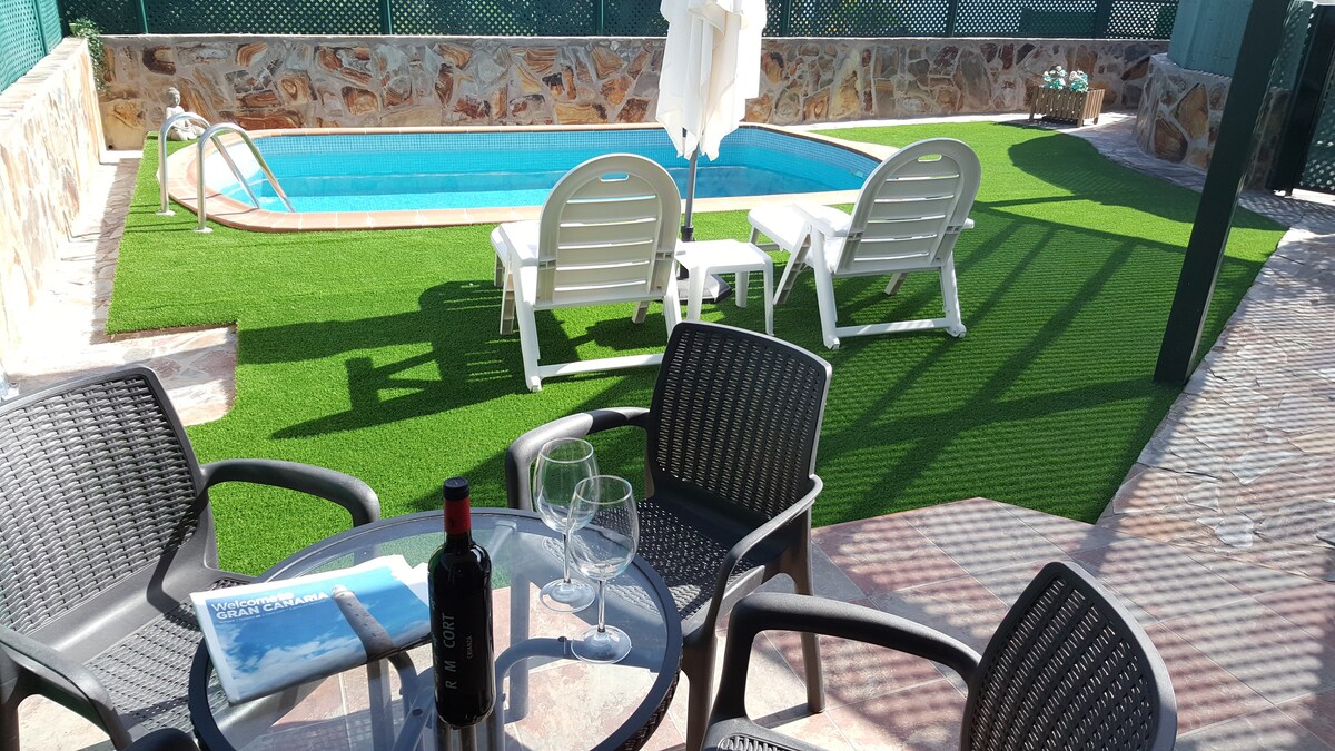Die Unterkunft liegt auf der Südseite der Insel, in der vulkanischen Caldera von Tirajana, einem idyllischen Ort. Der Blick öffnet sich 360 ° auf die Palmenhaine des Tals und die Vulkangipfel. Es verfügt über einen mit Salz behandelten Pool mit Wasserfall, der beheizt ist. Es befindet sich auf einem Anwesen neben einem anderen Ferienhaus für zwei Personen. Beide Häuser sind völlig unabhängig und verfügen über einen eigenen Eingang und eigene Sanitäranlagen. Nur der Parkplatz und der Pool werden gemeinsam genutzt. Daher ist die Privatsphäre garantiert.