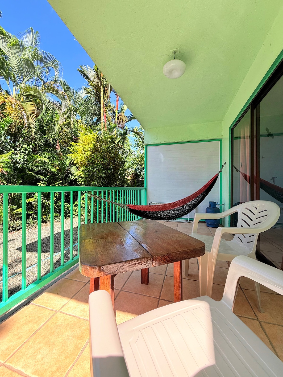 Die Wohnung befindet sich an der Main Street in Playa Chiquita, der ruhigsten und sichersten Gegend von Puerto Viejo, nur wenige Meter vom schönsten Strand der Karibik entfernt. Sie ist ausgestattet mit: ✓ Privatem Eingang ✓ Klimaanlage ✓ ✓ Ausgestatteter Küche Glasfaser-WLAN ✓ Privatem Balkon ✓ Außenparkplatz mit Überwachungskameras. Ein paar Meter entfernt findest du auch Restaurants, Supermärkte und Fahrradverleihe. Die Gegend ist gut angebunden und nur wenige Autominuten von der Innenstadt, Punta Uva, Playa Cocles und Manzanillo entfernt.