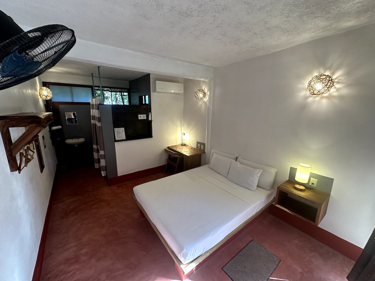 Cabañita befindet sich auf einer zweiten Ebene mit eigenem WC und Gemeinschaftsdusche AUSSERHALB des ZIMMERS, mit Blick auf den Garten, ein Doppelbett mit Moskitonetz, kostenloses Starlink-WLAN, ein Ventilator, ein Safe und ein sorgfältiger täglicher Reinigungsservice. Wir haben kostenlose Parkplätze nach Verfügbarkeit. Das Hotel liegt am Strand und verfügt über eine Restaurant-Bar-Cafeteria (Verifiziere deine Zeiten, danke)