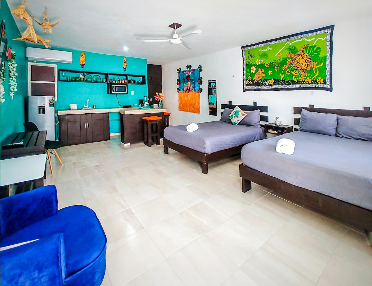 Entspanne dich in diesem einzigartigen und ruhigen Kurzurlaub. Wir laden dich ein, das Cenote Studio zu entdecken, einen exklusiven Raum mit einer kompakten Küche, einem eigenen Badezimmer, einer Waschmaschine/einem Trockner, einem Fernseher und einer schnellen Glasfaserverbindung. Genieße einen kleinen privaten Garten zum Entspannen. Nur 50 Meter entfernt findest du eine natürliche Cenote und einen Infinity-Pool. Die Unterkunft liegt in einer ruhigen Umgebung, eine 15-minütige Radtour von der 5th Avenue entfernt. Kostenloser Transport einmal täglich in die Innenstadt, Strom inklusive. Dein idealer Rückzugsort