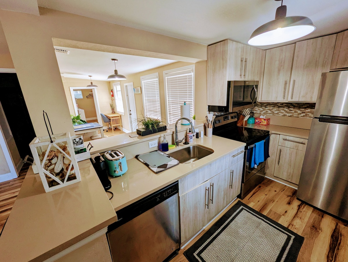 Modernes Loft aus der Mitte des Jahrhunderts mitten in der historischen Innenstadt von Titusville. Unser 2400 Quadratmeter großes Loft wurde wunderschön restauriert und renoviert und liegt oberhalb der Playalinda Brewing Company. Erstklassige Lage - nur einen Block von der freien Aussicht auf den Raketenstart entfernt und direkt am Radweg von Küste zu Küste. 15 Minuten zum berühmten und unberührten Playalinda-Strand oder 45 Minuten nach Disney. Gut ausgestattete Schlafzimmer mit Kingsize-Betten und ein Wohnzimmer mit Liegestühlen zum Lesen oder Schreibtisch für die Arbeit.