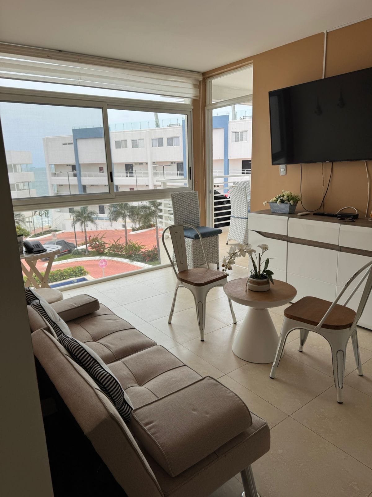 Apartamento frente al mar en el Ocean Club con todas las comodidades. Edificio moderno y con amplias áreas sociales a 45 minutos de Guayaquil y en la mejor zona de Villamil Playas.