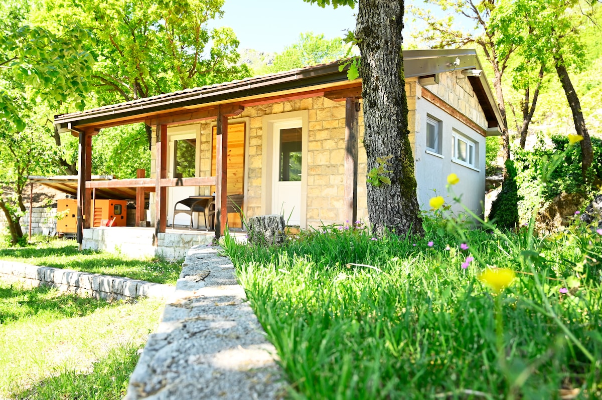 Für diejenigen, die absolute Entspannung suchen, macht die Kombination aus Panoramablick, friedlicher Einsamkeit und einer Fülle von Wildtieren dieses einstige Fischerdorf zur perfekten Flucht vor dem Ansturm des Alltags. Hier verlangsamt sich die Zeit, sodass du dich sowohl mit der Natur als auch mit dir selbst verbinden kannst. Dieses charmante Haus mit einem Schlafzimmer bietet Terrassen mit üppigem Grünblick und den Fluss Karatuna. Kaffee mit fernen Blick auf das Lovcen-Mausoleum, wo der Sonnenuntergang auf den Hügeln dieser einzigartigen ländlichen Region eintaucht