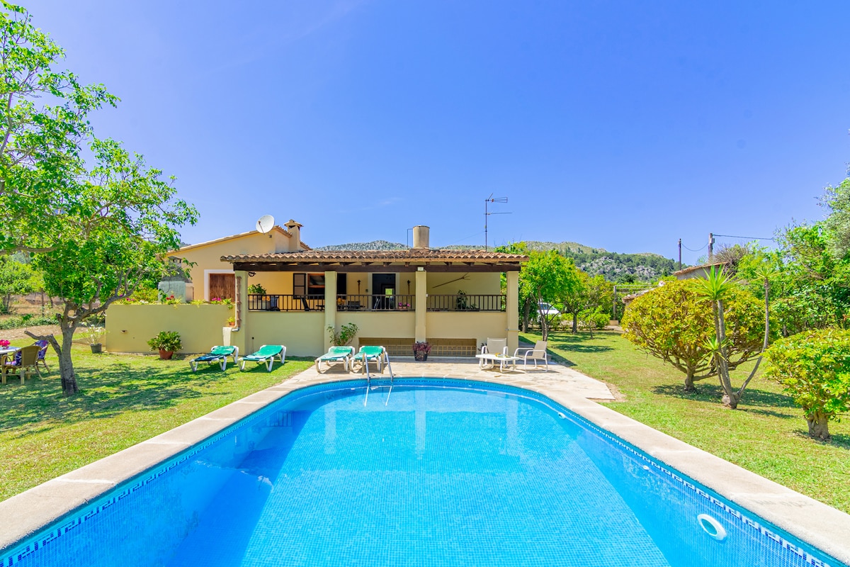 Bonita casa con piscina rodeada de vegetación ideal para familias, dos dormitorios con A/C, dos baños, salón comedor, cocina completamente equipada Wifi gratis, Parking privado, zona muy tranquila a cinco minutos de la Bahía de Pollensa y 10 minutos de Puerto de Pollensa y Pollensa. Piscina climatizada bajo petición tiene un coste extra.