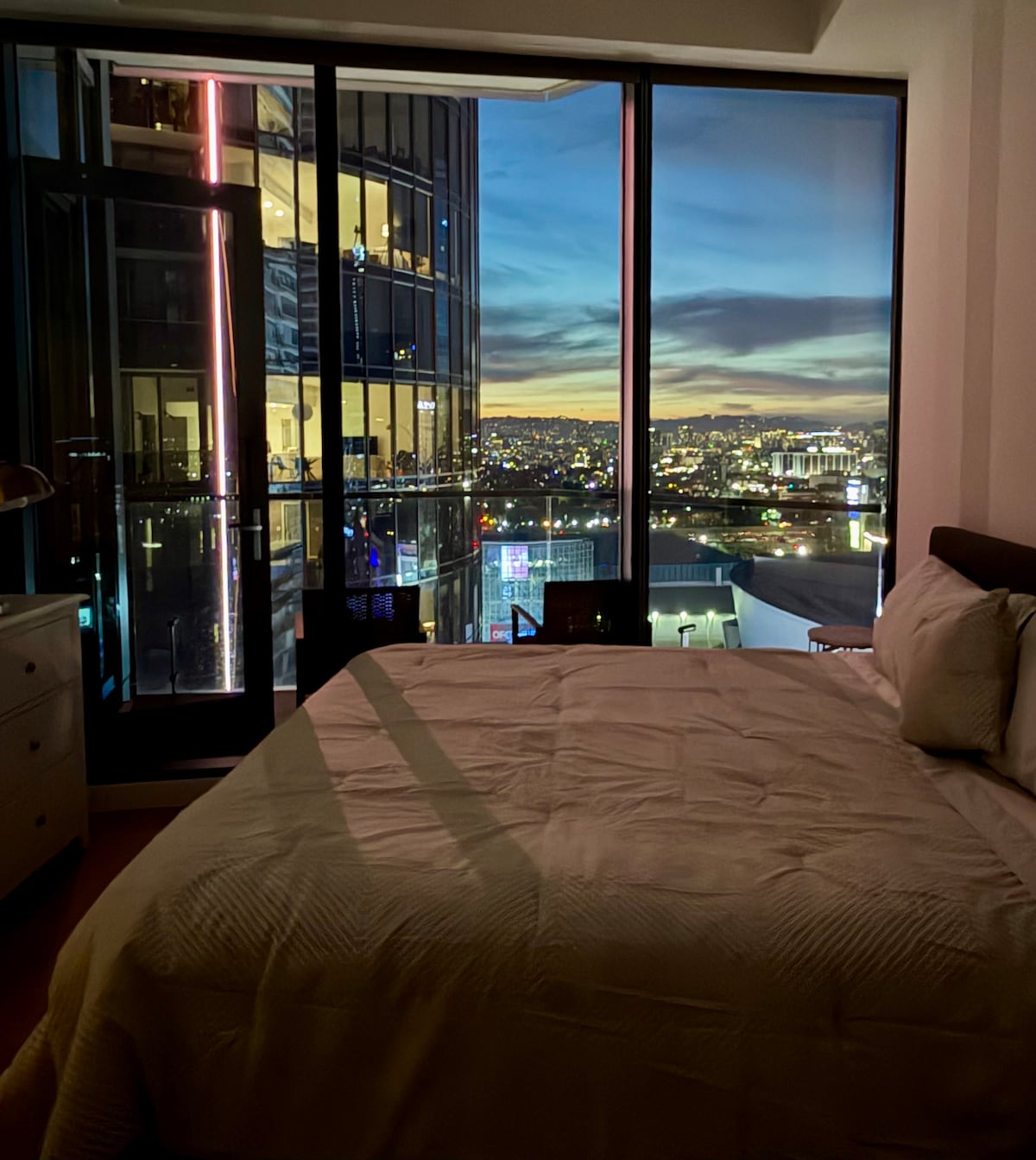 Genieße diese atemberaubende moderne Luxus-Wohnung mit 1 Schlafzimmer/1 Badezimmer im Herzen von DTLA. Diese stilvolle Wohnung bietet einen atemberaubenden Blick auf die Stadt, eine Waschmaschine/einen Trockner, einen 4K-TV, kostenlose Parkplätze, kostenlosen Kaffee und viele weitere Annehmlichkeiten im Komplex. Nur 1 Meile von der Crypto Arena, LA Live und vielen anderen Restaurants und Sehenswürdigkeiten entfernt. 7 Meilen von den Universal Studios entfernt. Zu den zusätzlichen Annehmlichkeiten gehören: - Fitnessraum - Pool - KOSTENLOSE Parkplätze Perfekt für Paare und kleine Familien!