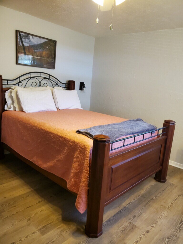 Erbaut 1996 aus wiedergewonnener Zypresse aus einem 100 Jahre alten Haus in New Orleans. Dieses gemütliche kleine Tiny House, nur 600 Quadratfuß, befindet sich auf einem 5 Hektar großen Grundstück in den Ozarks. Es teilt sich das Anwesen mit BelleRose Cottage. Es ist sechs Meilen vom Buffalo River Zugang zum Kanufahren und Schwimmen am majestätischen Steel Creek entfernt. In der Nähe zahlreicher Wanderwege und des berühmten BOC Downhill-Radweges. 5,6 Meilen von der Wilderness Rider Buffalo Ranch entfernt, ein Traum für ATV-Fahrer.
