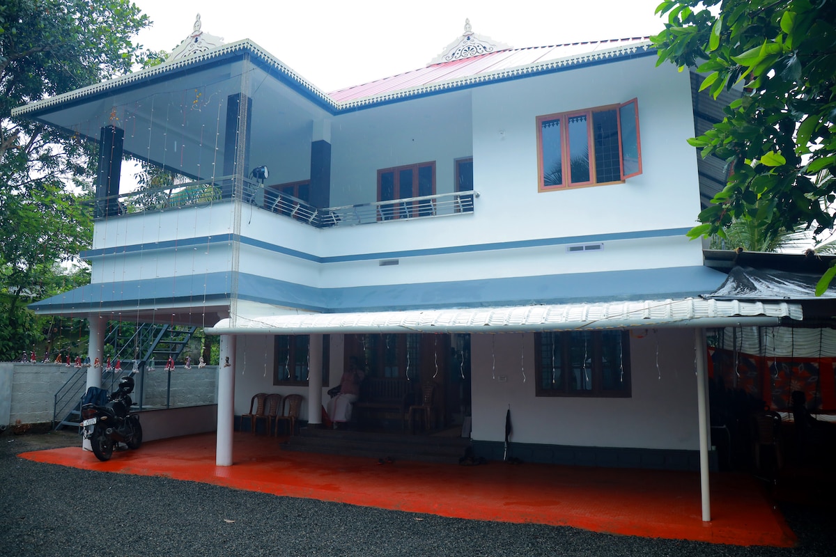 Willkommen in unserem ruhigen zweistöckigen Haus in Muthuvara, Kerala, eingebettet in üppiges Grün! Nur wenige Minuten von der Stadt entfernt bietet dieser geräumige Rückzugsort eine perfekte Mischung aus Komfort und Natur. Genieße morgens Kaffee auf dem Balkon mit atemberaubender Aussicht und entspanne dich am Abend im gemütlichen Wohnbereich. Mit modernen Annehmlichkeiten und einer ruhigen Atmosphäre ist es ideal für Familien oder Paare, die Entspannung suchen. Erkunde die lebendige lokale Kultur oder genieße einfach die Schönheit um dich herum. Deine perfekte Auszeit wartet auf dich!