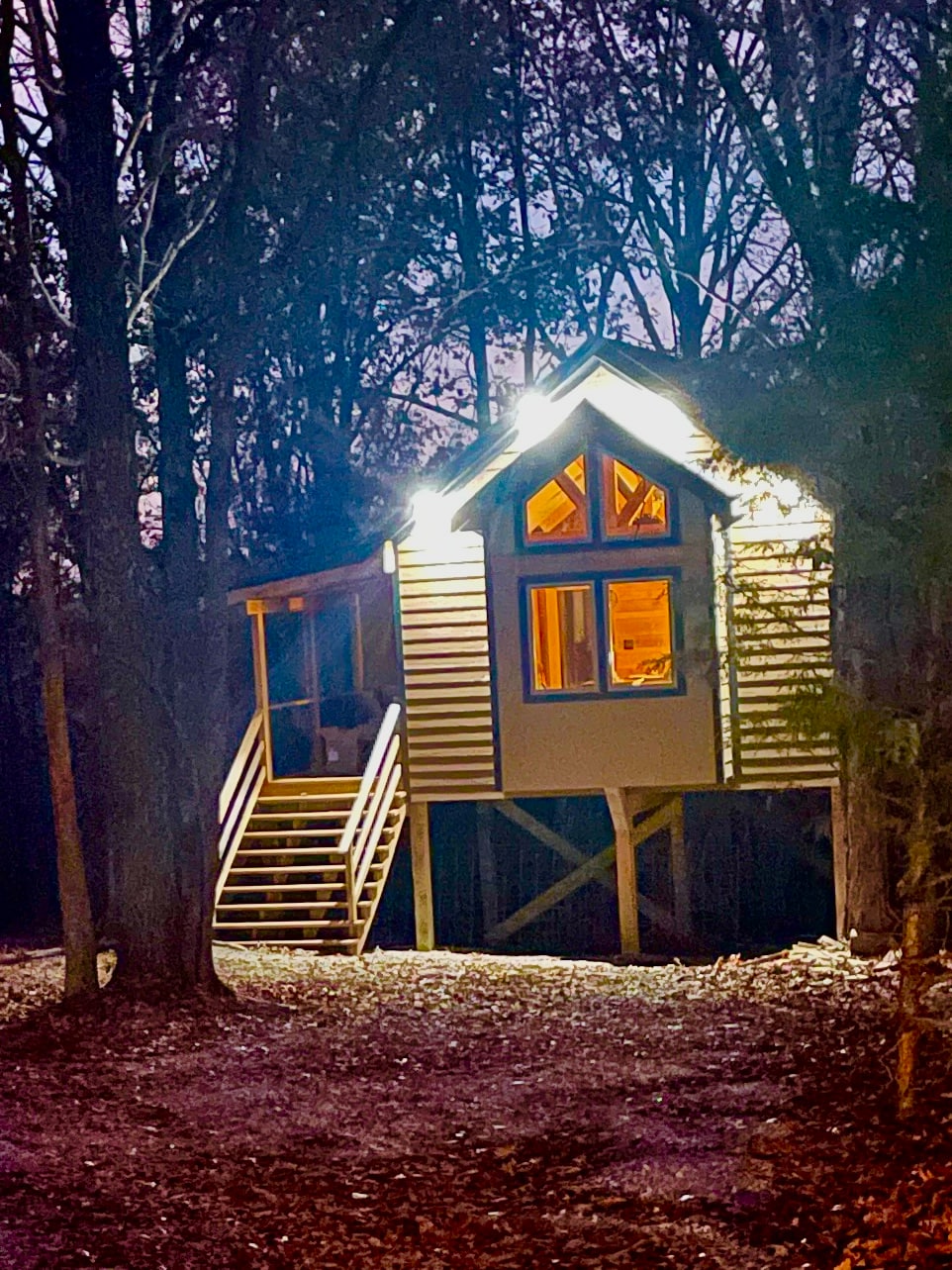 "The Roost" is a modern treehouse 2 hrs south of St Louis near Wappapello Lake. Yes it has indoor plumbing & running water. Accommodates two adults, has a fully equipped kitchen, and breakfast items are provided for you to cook. Surrounded by thousands of acres of national forest. Observe wildlife sightings from the deck while soaking in the private hot tub, sleep comfortably in a queen size pillowtop Serta bed on a Motion Air base, and relax as you enjoy the ambience of the fireplace.