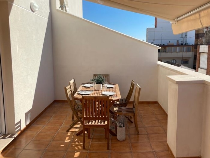 Genieße eine Unterkunft mit Meerblick 🏖️! Nur 20 Autominuten von Valencia entfernt, genießen Sie dieses charmante, stilvolle Penthouse mit einer riesigen Terrasse mit Blick auf das Meer, neben dem Strand mit blauer Flagge, der zu den besten Stränden von Valencia zählt, am Strand von Puerto de Sagunto. Registrierungsnummer: GVRTE/2025/606407