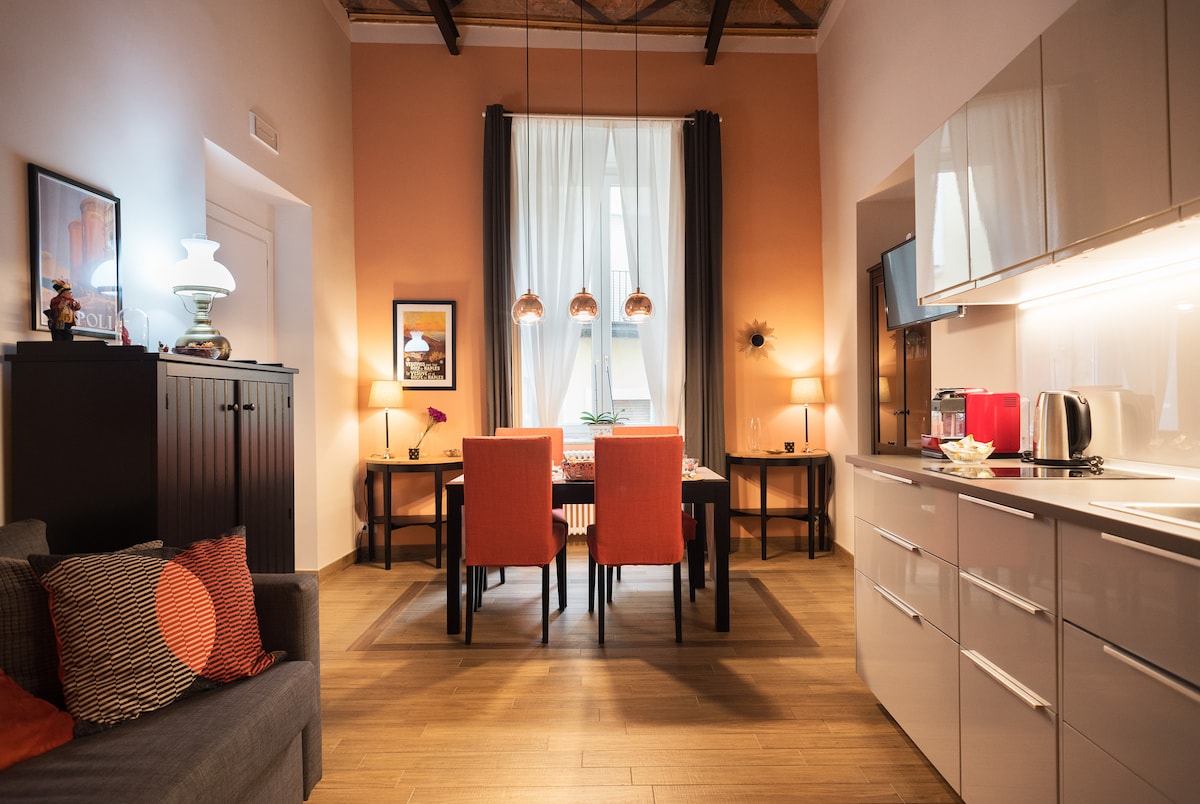 Luxury apartment: a combination of classic elegance and modernity, just renovated with JACUZZI and PRIVATE ROOFTOP of 90mq where you can admire the volcano Vesuvius. Located in a historical building on the 3rd floor without elevator in the heart of the old town, you can reach everything by walking. WiFi, PrimeVideo, Nespresso and luggage storage for FREE Points of interest • 2 min Duomo • 4 min Underground Naples • 6 min Metro L1 & L2 • 5 min Train Station • 10 min Harbour