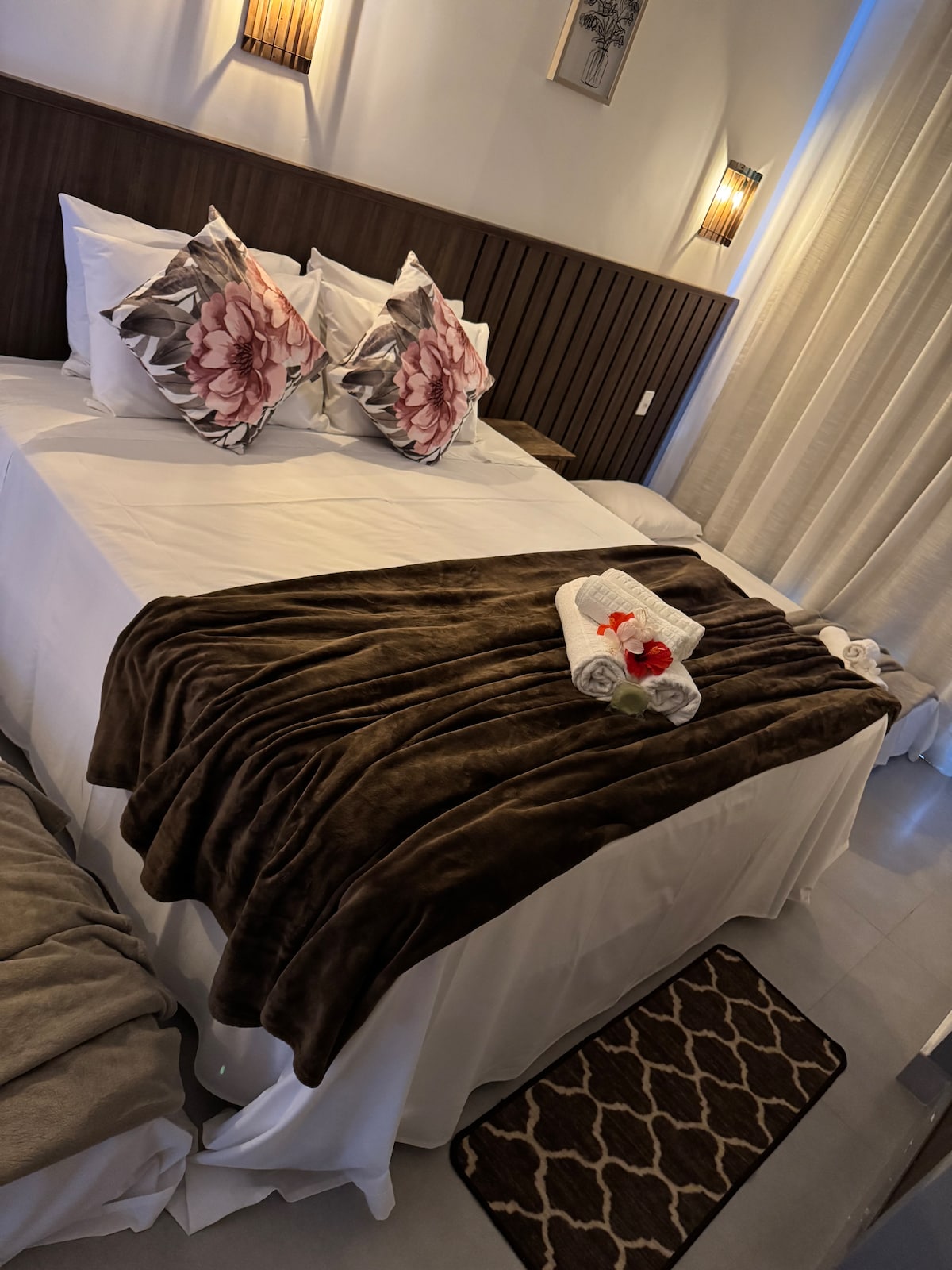 Suite com uma cama de casal e até duas camas auxiliares de solteiro. Ar condicionado split, frigobar, guarda roupas. . Atenção ! Roupas de cama e banho não estão inclusos na hospedagem. Nem café da manhã, nem chá da tarde. Nem itens de higiene pessoal e nem limpeza de quarto diária. . Esses serviços são exclusivos para contratação da hospedagem pela Pousada Rarogui’s .
