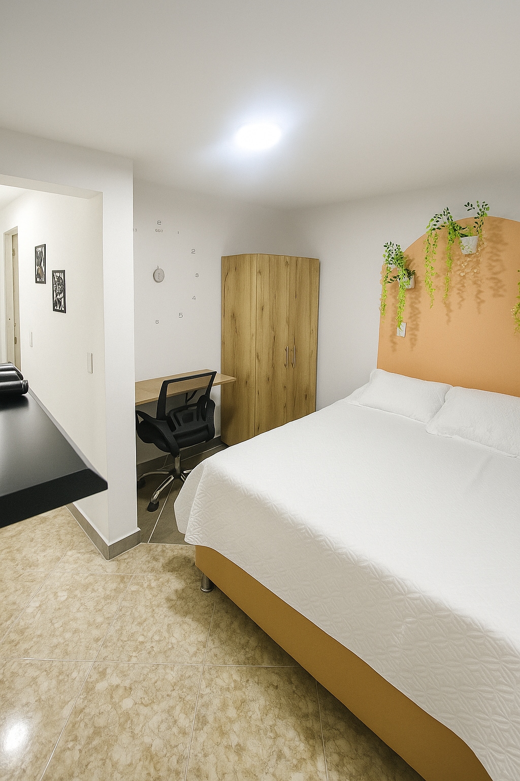 Im Herzen von Manrique, in der Nähe der U-Bahn-Station Plus. Diese Wohnung ermöglicht es dir, die Stadt wie ein Einheimischer, ihre kleinen Geschäfte, die Freude der Menschen und die Energie eines Viertels mit einem immer wach gewordenen Geist zu genießen. Es verfügt über einen Balkon mit Blick auf die Schönheit der Berge und der Sonnenuntergänge, natürliches Licht tagsüber und die Wärme unseres tropischen Klimas, einen großen Kleiderschrank, TV, eine voll ausgestattete Küche, einen Waschbereich, ein modernes Badezimmer mit heißem Wasser, ein zum Schlafen geeignetes Sofa.