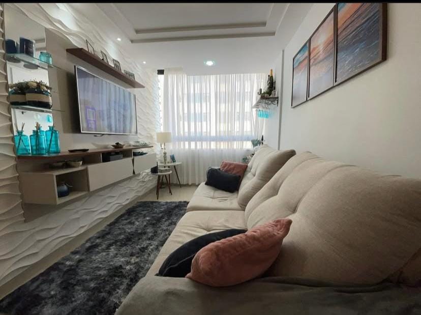 Wohnung von 70 m², vor dem Strand Itaparica, in der Nähe von Kiosk 8. Idealer Feiertag/ Feiertag/Wochenende/Stadttermin. 2 Schlafzimmer (1 Doppelbett und 2 Einzelbetten, mit Deckenventilator, Vorhänge und 2 Fernseher), 2 Badezimmer (sozial und en-suite), Doppelschlafsofa im Wohnzimmer. 1 Matratze. Küche mit Herd, Kühlschrank, Mikrowelle, Fehler, Mixer, Wasserfilter, Geschirr, Gläser, Xicaras, Besteck, Töpfe, einschließlich Druckpfannen. Ampla-Balkon mit Hängematte. Gebäude mit Schwimmbad, Sauna und 2 Parkplätzen.