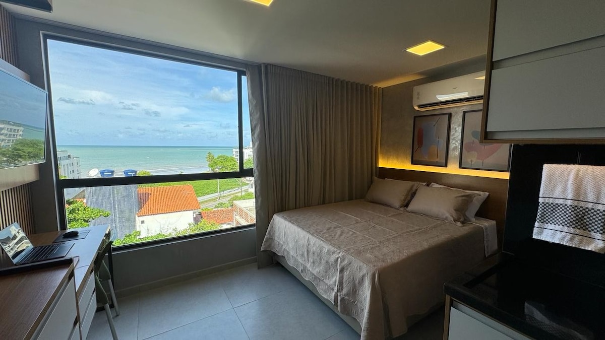 Você ficará confortavelmente neste lugar espaçoso e único. O flat comporta tranquilamente até 3 pessoas! Cama nova , tudo novo! Se deite na cama e veja as ondas e o barulho do mar! A experiência é espetacular! A natureza e o lindo mar da Praia do bessa a alguns metros da sua cama, mesa de jantar e trabalho ! Você pode comer , trabalhar, descansar tudo isso olhando para o mar 24 horas por dia e sem nenhum trânsito de carros porque a rua do flat é sem saída e é usada para moradores e hóspedes!