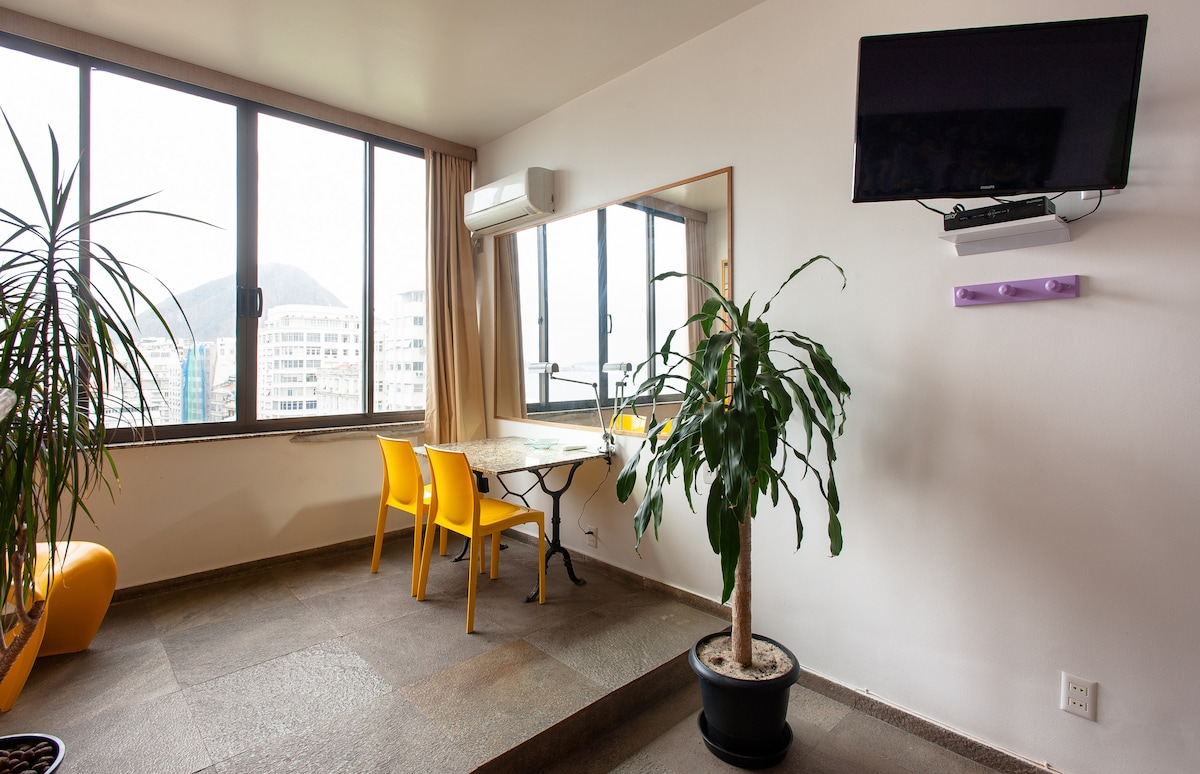 Vista Mar maravilhoso mesmo, não precisa torcer o Pescoço para ver a Praia :)...Studio com Localização privilegiada com Mercados,Farmácia, Restaurantes, Bares.O Ap fica entre Copacabana Palace e Hotel Hilton no Posto 2.Quem vem de Carro pode estacionar tranquilo na Avenida Atlantica pagando uma pequena Taxa.Seja bem vindo