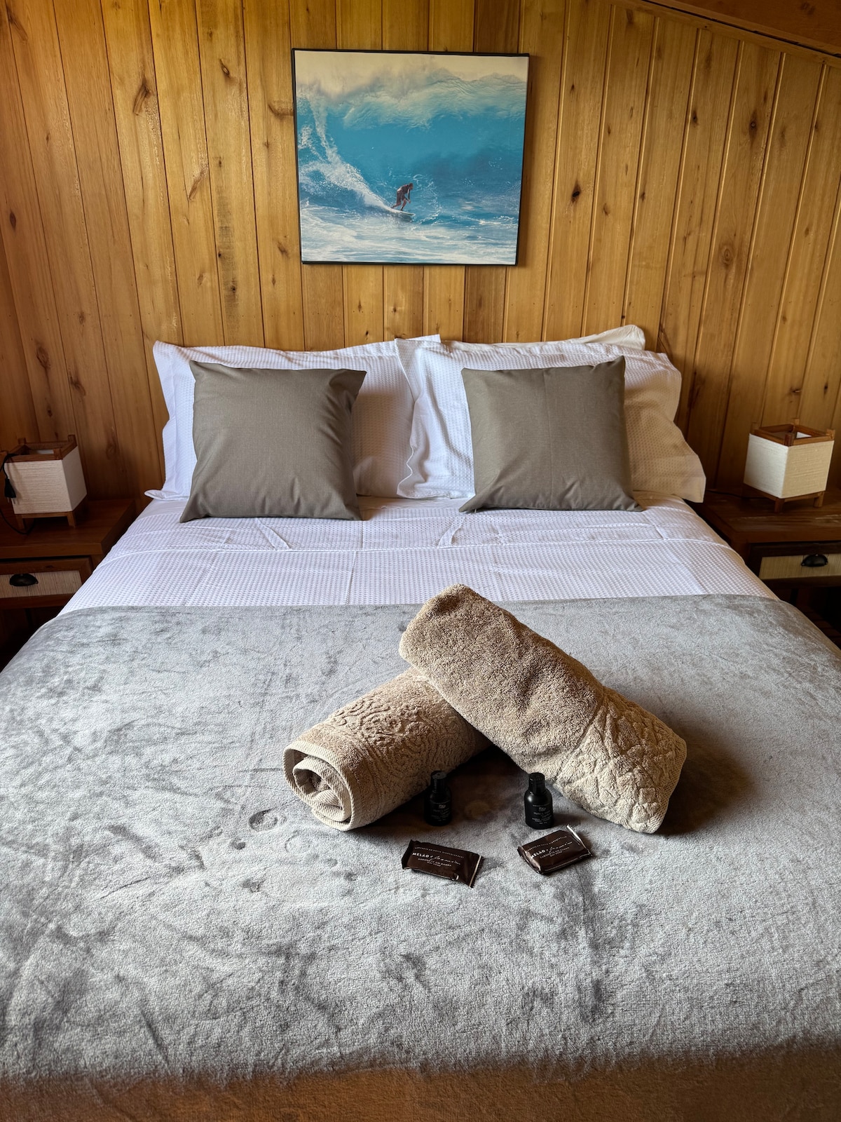 Cabanas charmosas e aconchegantes próximo ao mar e a maravilhosa natureza da Praia do Rosa. Com a melhor localização, estamos à 600m do Rosa Norte (10 minutos a pé) e localizado no centrinho. As cabanas Villa Chodon oferecem todo o conforto que o hóspede merece. Todas equipadas com ar condicionado, smart-tv, Wi-Fi e estacionamento próprio. A cozinha é completa (e com utensílios) para o preparo das refeições. Seus dias serão incríveis na Pousada Villa Chodon!!!